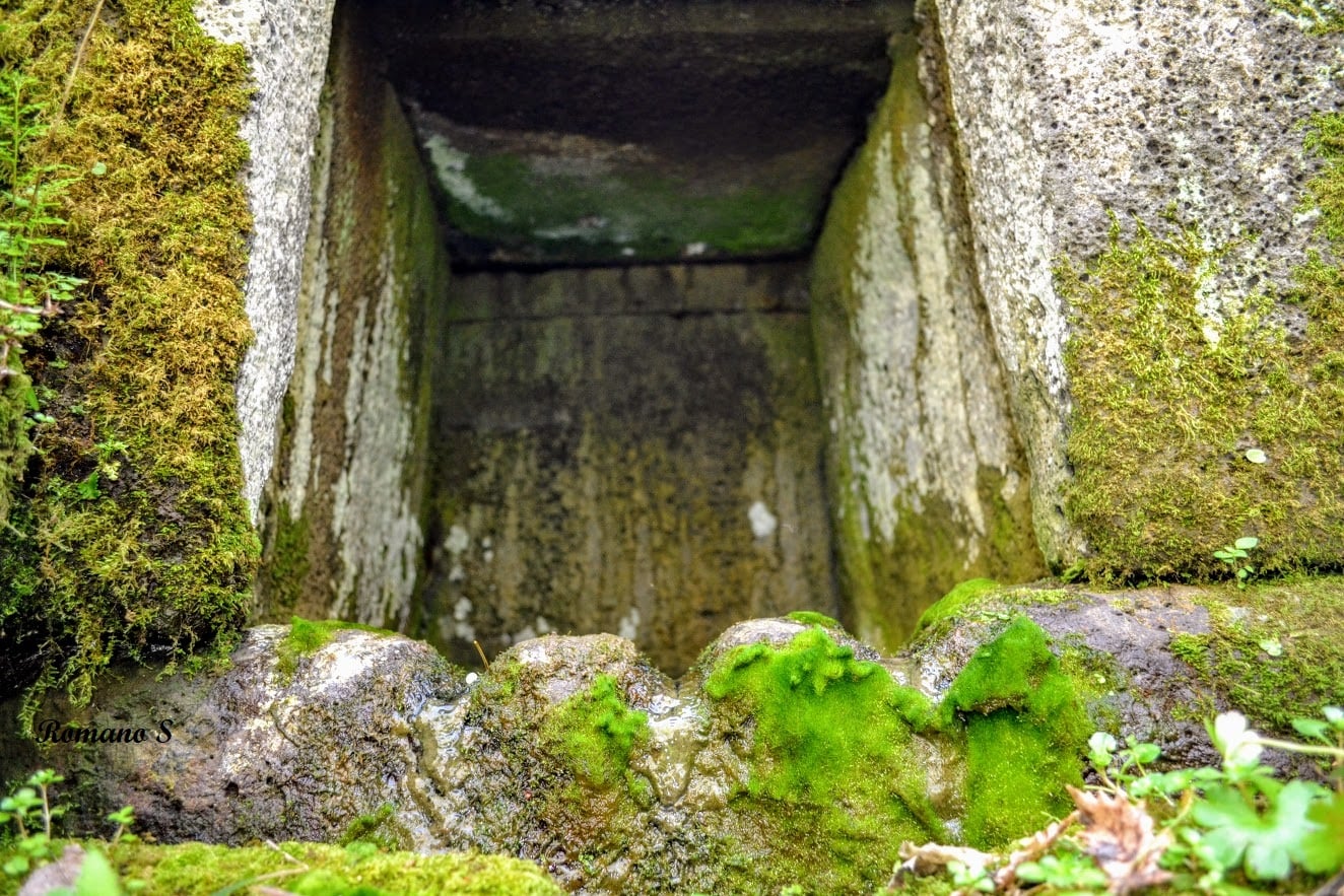 Tipica fonte nuragica con stipiti realizzati da conci litici e architrave di chiusura. Interno con vasca di raccolta dell’acqua