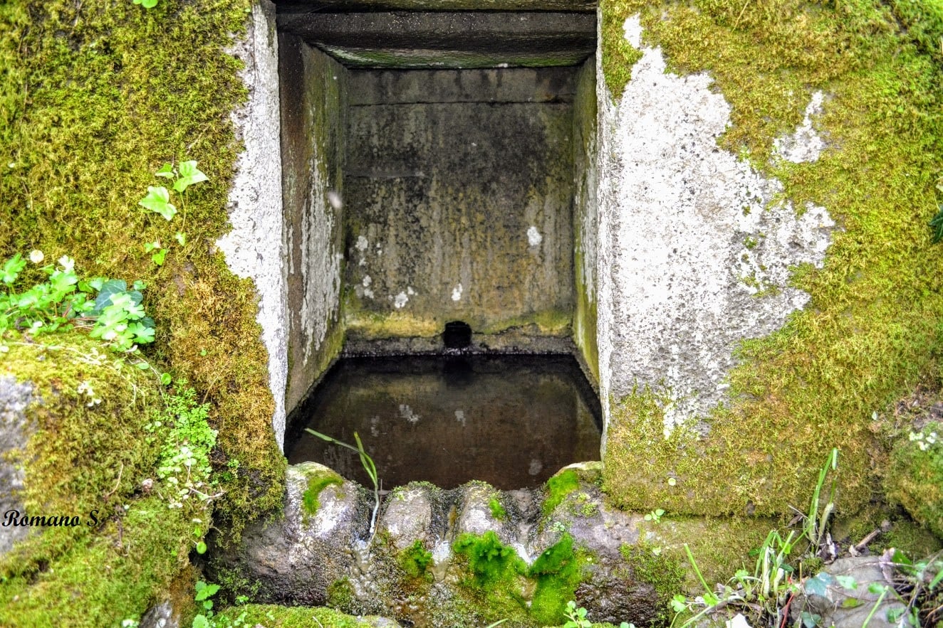 Ha una caratteristica mai descritta prima: è costruita a “tutto tondo”: l’acqua si raccoglie in un corpo retrostante absidato: ” Il corpo di fabbrica, realizzato in opera isodoma con l’impiego di conci in pietra basaltica e trachitica, si conserva per una cospicua porzione di base che ne restituisce l’impianto planimetrico oblungo, articolato in un avancorpo rettilineo d’ingresso e in un corpo retrostante absidato, contenente la cella di raccolta dell’acqua sorgiva.