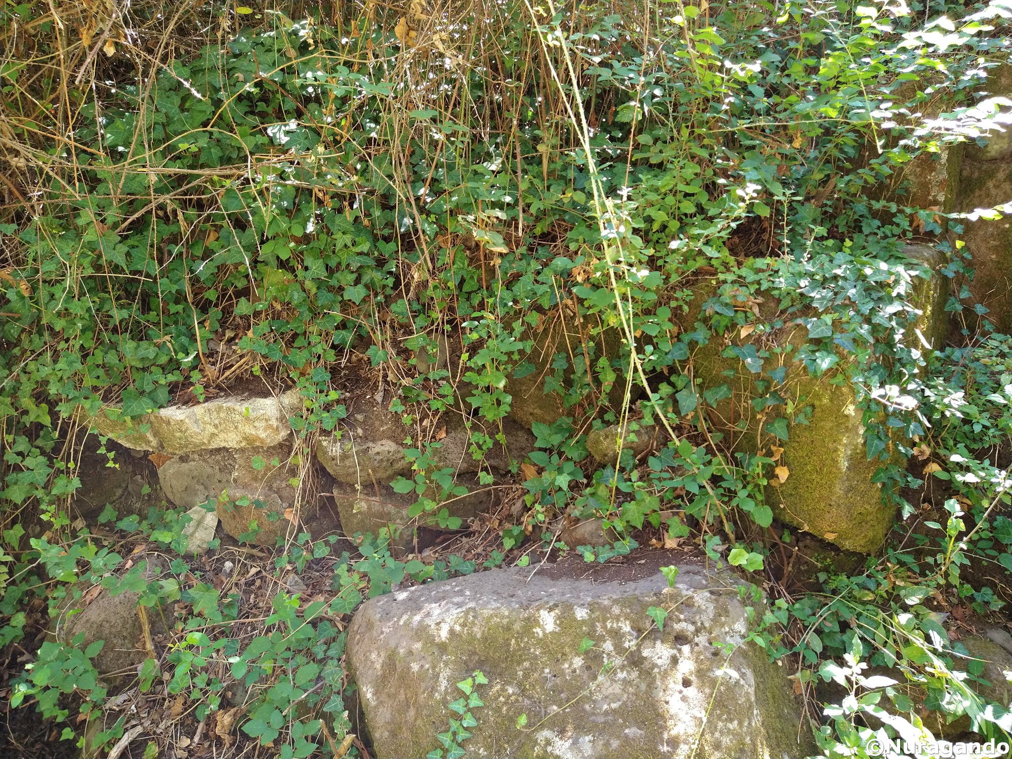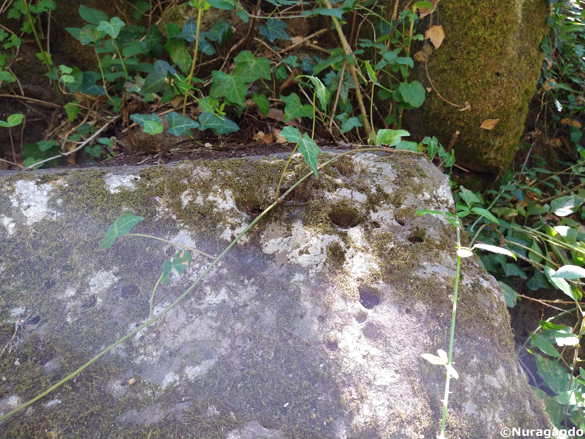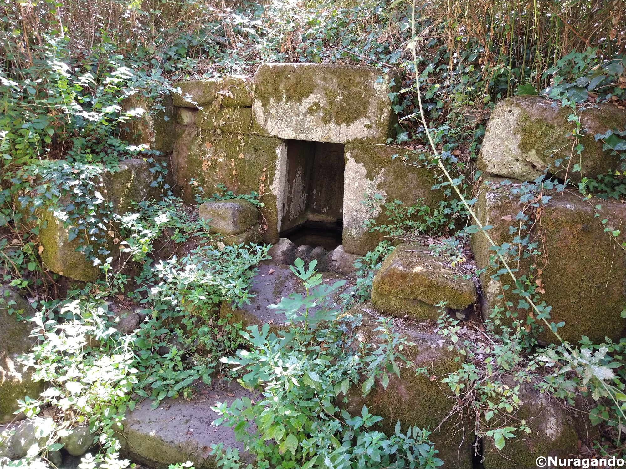 Ha una caratteristica mai descritta prima: è costruita a “TUTTO TONDO”: l’acqua si raccoglie in un corpo retrostante absidato: ” Il corpo di fabbrica, realizzato in opera isodoma con l’impiego di conci in pietra basaltica e trachitica, si conserva per una cospicua porzione di base che ne restituisce l’impianto planimetrico oblungo, articolato in un avancorpo rettilineo d’ingresso e in un corpo retrostante absidato, contenente la cella di raccolta dell’acqua sorgiva.
