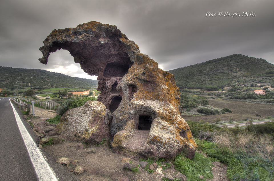 la necropoli ipogeica di “sa perdra pertunta” meglio conosciuta come “Roccia dell”elefante” è composta da due domus de janas: la prima è posta nella parte alta di un grande masso tracchitico e residuano solamente tracce di tre vani; la seconda tomba, si apre poco sotto, sullo stesso masso, è composta da quattro cellette ed è interessante e molto conosciuta per la presenzadi protomi taurine scolpite sulle pareti del primo vano