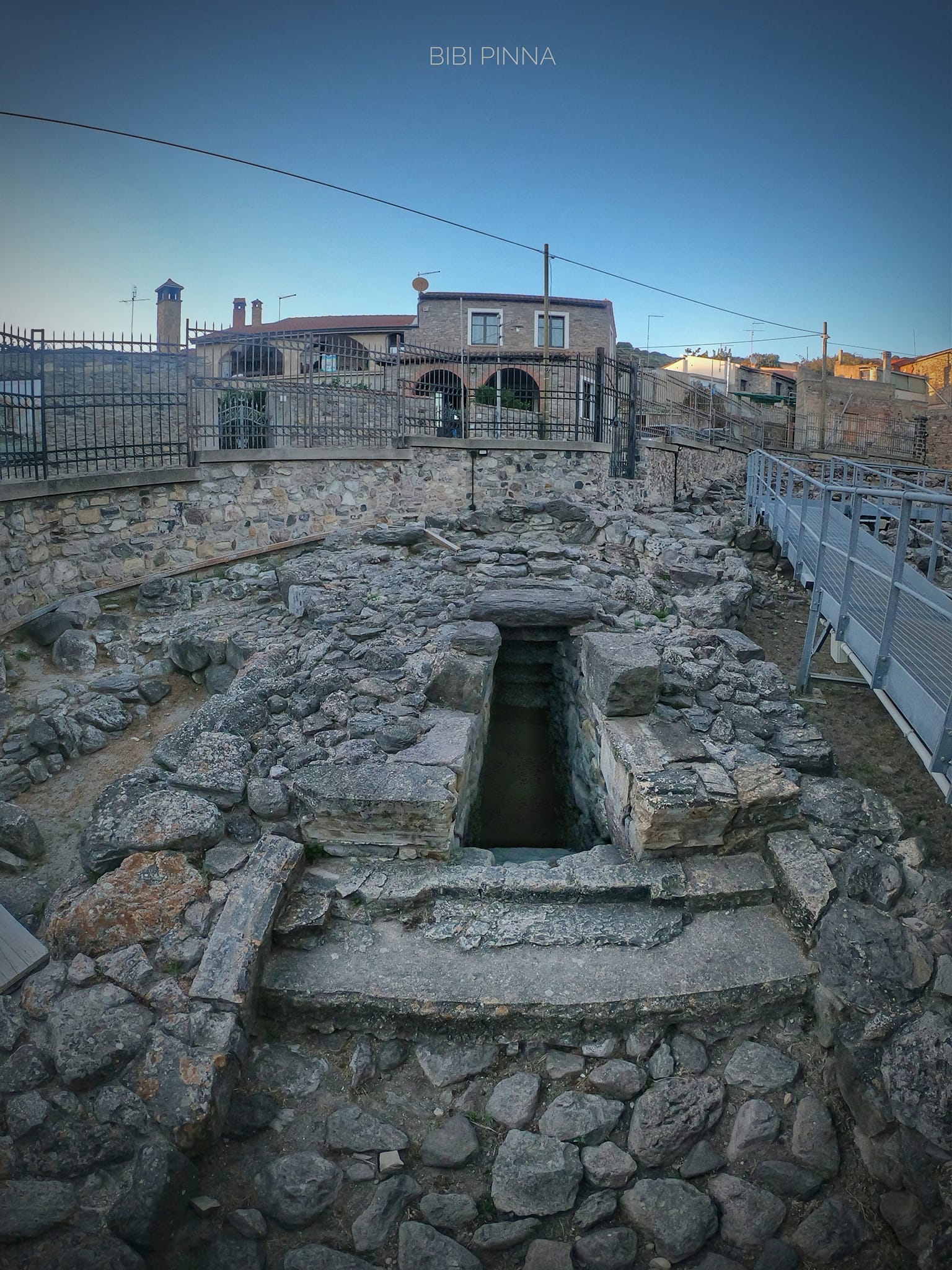 Costruito dai sardonuragici il pozzo ha un’età presumibile di 2700 anni, è stato scoperto nel 1883 durante lo sbancamento per la posa dei binari da parte delle ferrovie dello stato, si presume che siano andati perduti dei preziosi reperti, dei 40 gradini in origine se ne contano 22, sono stati trovati vari reperti quali anelli e monete tutti conservati presso il museo archeologico di Cagliari.