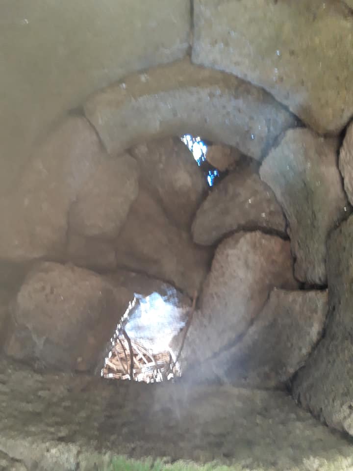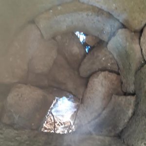Tempio a pozzo, tra i più raffinati della Sardegna nuragica, presenta lo schema con vestibolo che introduce in una scala di collegamento con la camera del pozzo. L’edificio è costruito con conci di calcare perfettamente lavorati e posti in opera su filari regolari. Il vestibolo, rettangolare (larghezza m 2,70; profondità m 1,88), con pavimento perfettamente lastricato, presenta alle pareti due banconi-sedile formati da due blocchi lavorati.