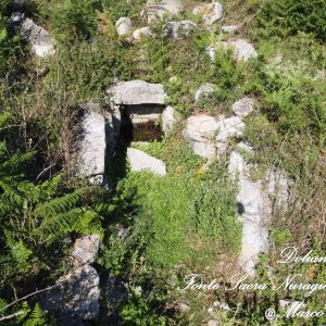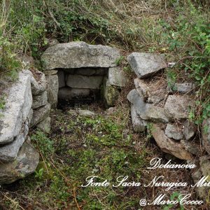 Questa fonte si trova a pochi passi dal Nuraghe Sa domu ‘e S’Orcu, in una zone ricca di sorgenti e pozzi di diverse età. Dal punto di vista architettonico, l’area sacra sembra richiamare, almeno nelle linee generali, modelli strutturali di età precedente. Già G. Lilliu, in contributo del 1990, notava come “lo schema di pianta a pozzetto rotondo preceduto da lungo atrio rettangolare allarga-o nel mezzo, arieggia a quello ben noto del tempio a pozzo protosardo”.