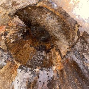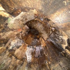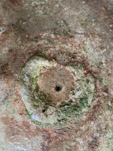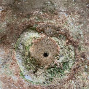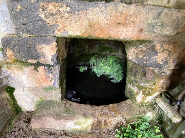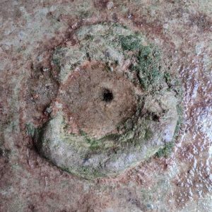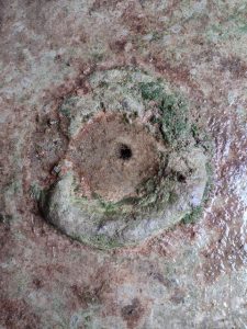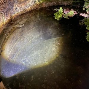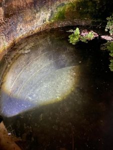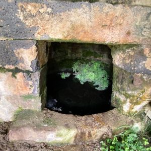 Fonte Sa Nièra, sita anch’essa sul colle Sa Nièra, ma più in basso, lungo il pendio, in direzione Nord-Ovest. Quando l’abbiamo trovata versava in pessime condizioni, nonostante vi abbiano edificato attorno una struttura in blocchetti per proteggerla. (Enrico Cicilloni)