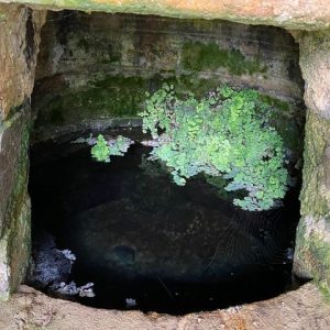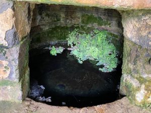 Fonte Sa Nièra, sita anch’essa sul colle Sa Nièra, ma più in basso, lungo il pendio, in direzione Nord-Ovest. Quando l’abbiamo trovata versava in pessime condizioni, nonostante vi abbiano edificato attorno una struttura in blocchetti per proteggerla. (Enrico Cicilloni)