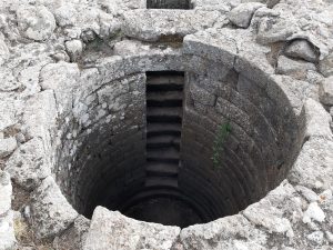 Il tempio a pozzo è il luogo più importante di tutto il santuario, tale da essere riconosciuto per primo e subito oggetto di scavi. Datato al IX secolo a.C. dall’archeologo Anati nel 1985[2], il sito venne costruito con la tecnica ciclopica, la medesima utilizzata per i nuraghi, ma al contrario di questi con pietre molto curate e non sbozzate. . Nell’antichità il tempio era coperto.