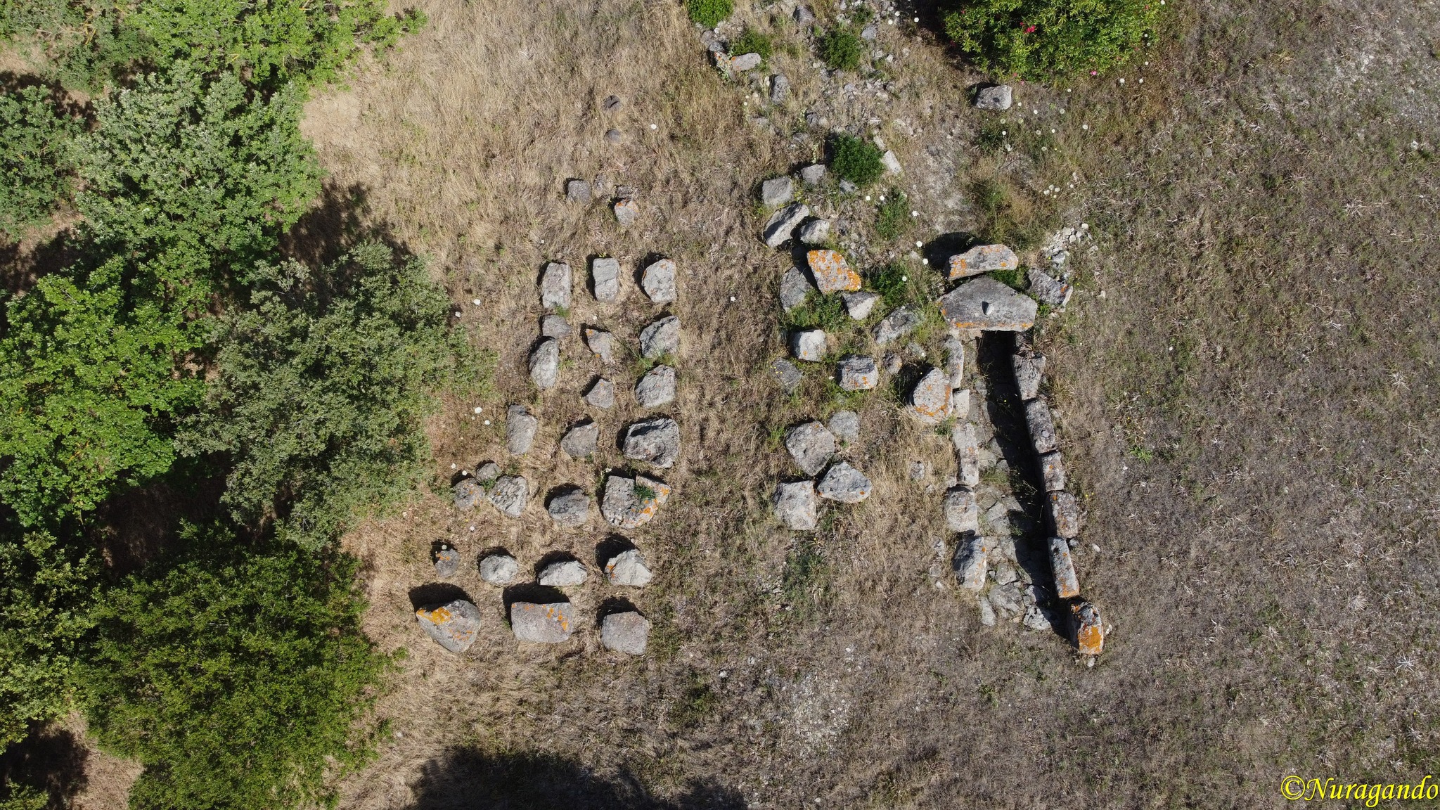 Due tombe dei giganti affiancate di due periodi realizzativi diversi. La prima è del tipo dolmenico, la seconda a filari contrapposti.