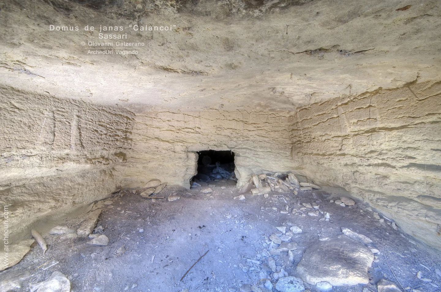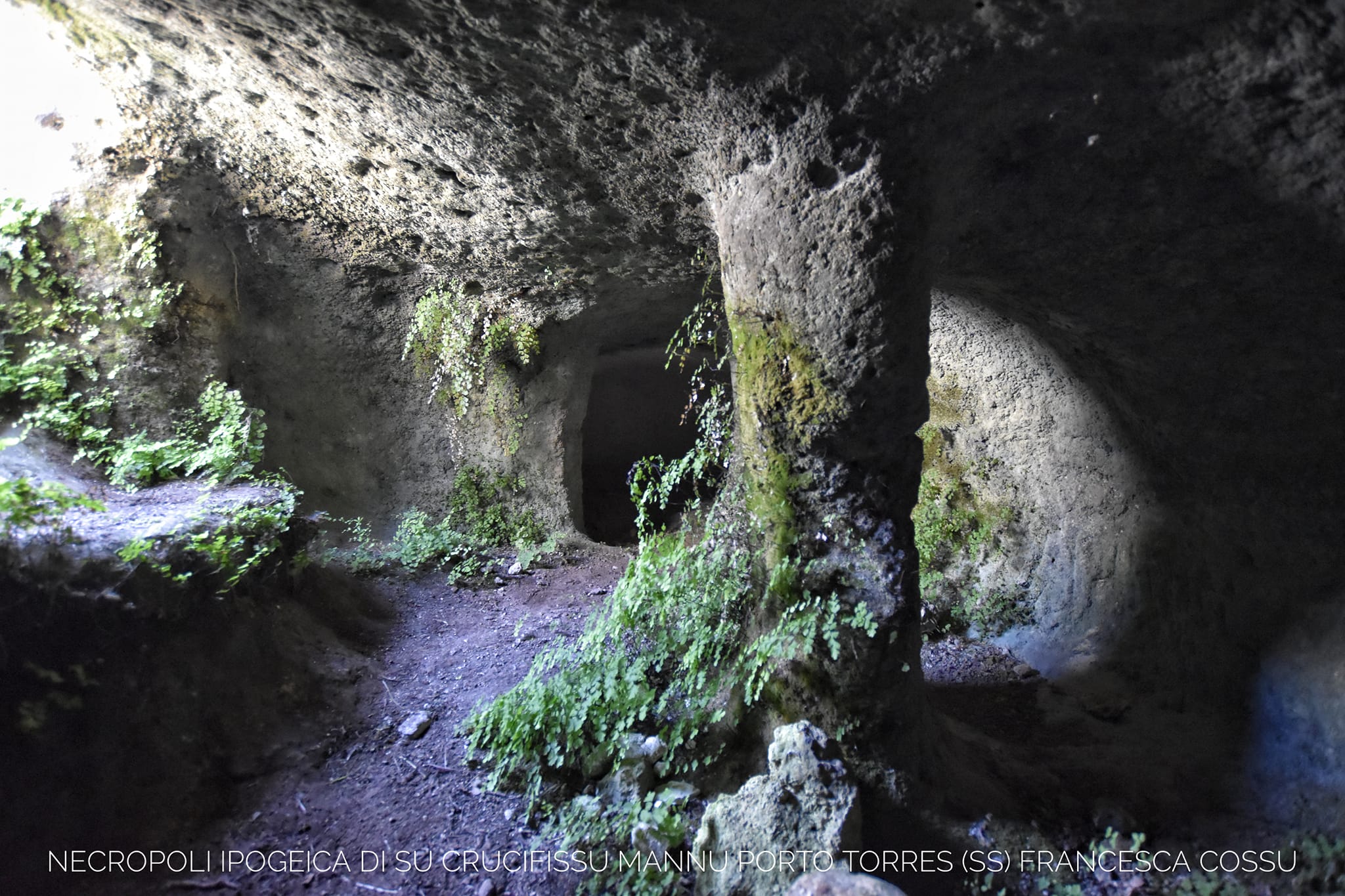 La necropoli è costituita da 14 domus de janas, considerate tra le più belle della Sardegna per la concezione architettonica. Dodici di esse sono aperte nella roccia in serie orizzontale, le altre due dirimpetto alle prime. I prospetti si impongono per la monumentalità e l’accuratezza della lavorazione:.in particolare quello della tomba 3, Un sistema di canalizzazione scavato nella roccia, tuttora visibile, preservava le sepolture dall’infiltrazione dell’acqua piovana. (Sardegna Cultura)