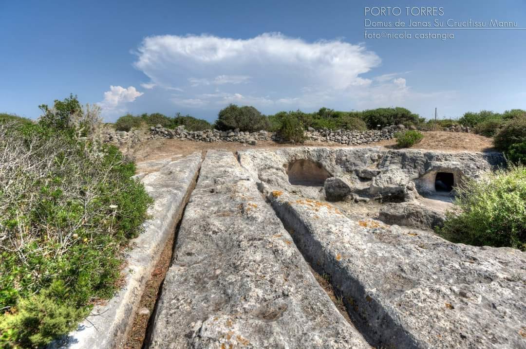 Gruppo di sette e più Domus de Janas poste sul passo, verso L”azienda Mariani, da cui si domina la piana di Santa Lucia e la sottostante necropoli di Sant”Andrea Priu e la valle dei nuraghi di Torralba. La tomba sette, della doppia spirale in ocra rossa, è stata restaurata di recente