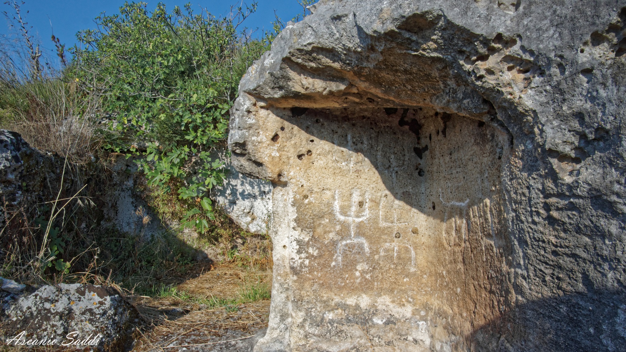 Gruppo di domus de janas in cui sono presenti dei petroglifi “del capovolto” molto simili ad altri analoghi e in particolare a quelli di Oniferi Sas Concas