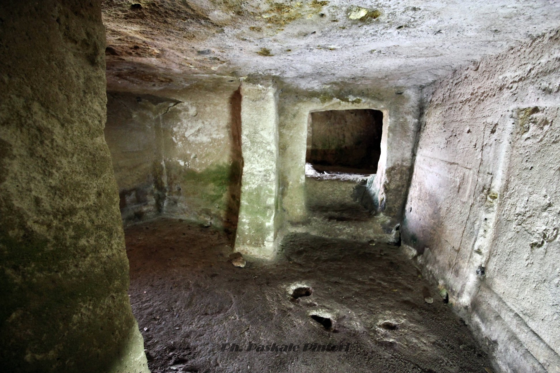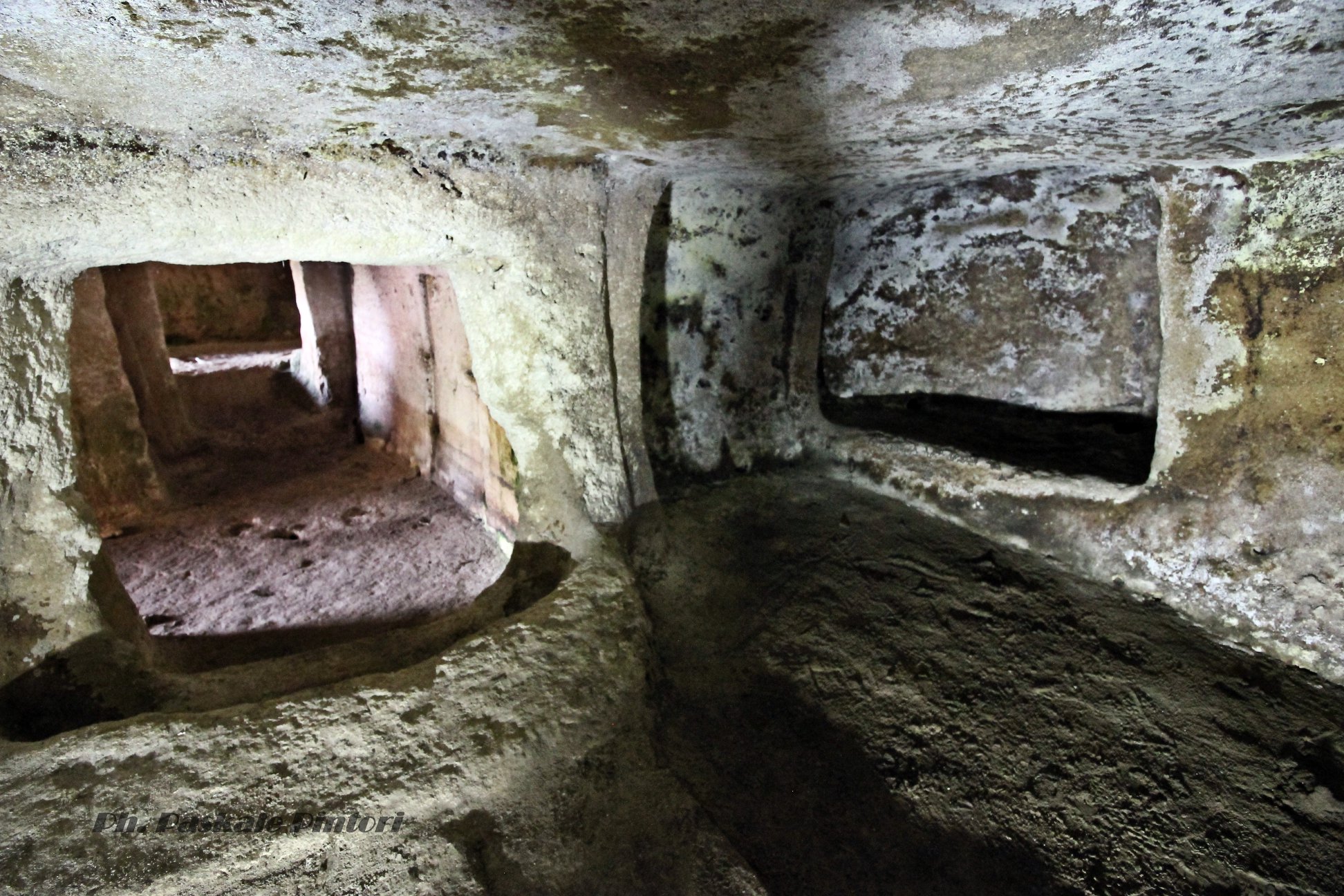 La necropoli comprende 18 domus de janas, tutte pluricellulari sino a 12 vani, riccamente adornate da lesene, pannelli, false porte, protomi taurine, chevron e altri motivi spiraliformi o a denti di lupo. Sette tombe riproducono le abitazioni prenuragiche: tetti a singola o doppia falda, orizzontale o spiovente, con o senza travi centrali e travetti laterali, sorretti o meno da pilastri, tutti scolpiti nella roccia. Una ha prospetto architettonico con la stele centinata scolpita