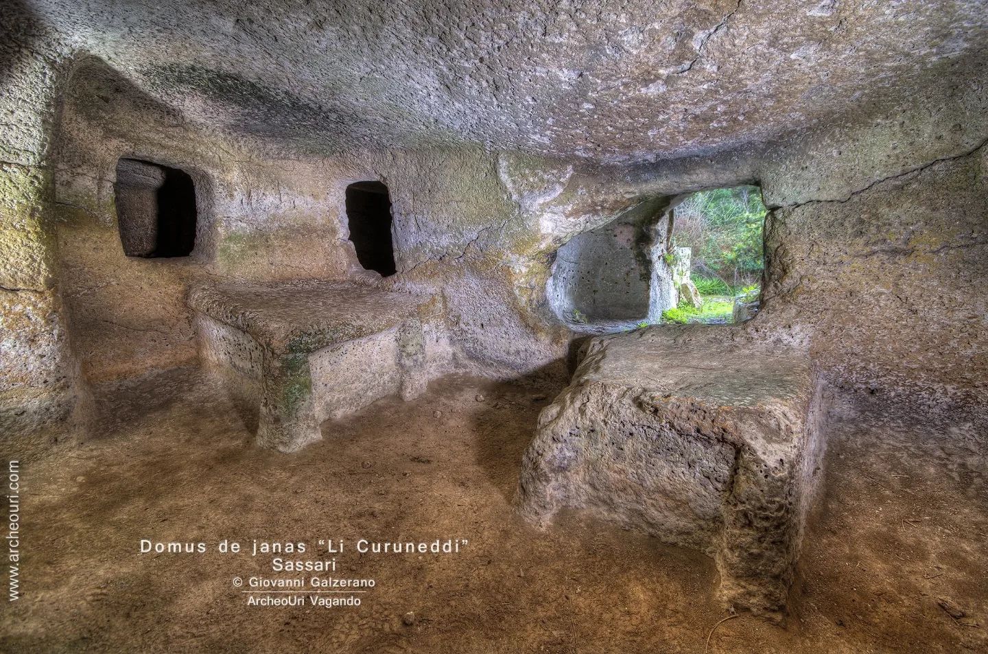 Gruppo di Domus de Janas, disposte su circa 200 metri del canale calcareo. La più ampia, sotto il rilevato stradale all’interno contiene: Su laccu: vasca utilizzata verosimilmente per produrre mosto. La Domus è talmente ampia da far pensare più a un’abitazione che a una tomba. Incavi sulle pareti di varie dimensioni. Ripostigli di vario tipo e articolati vani ipogeici più bassi e contigui alla camera principale.