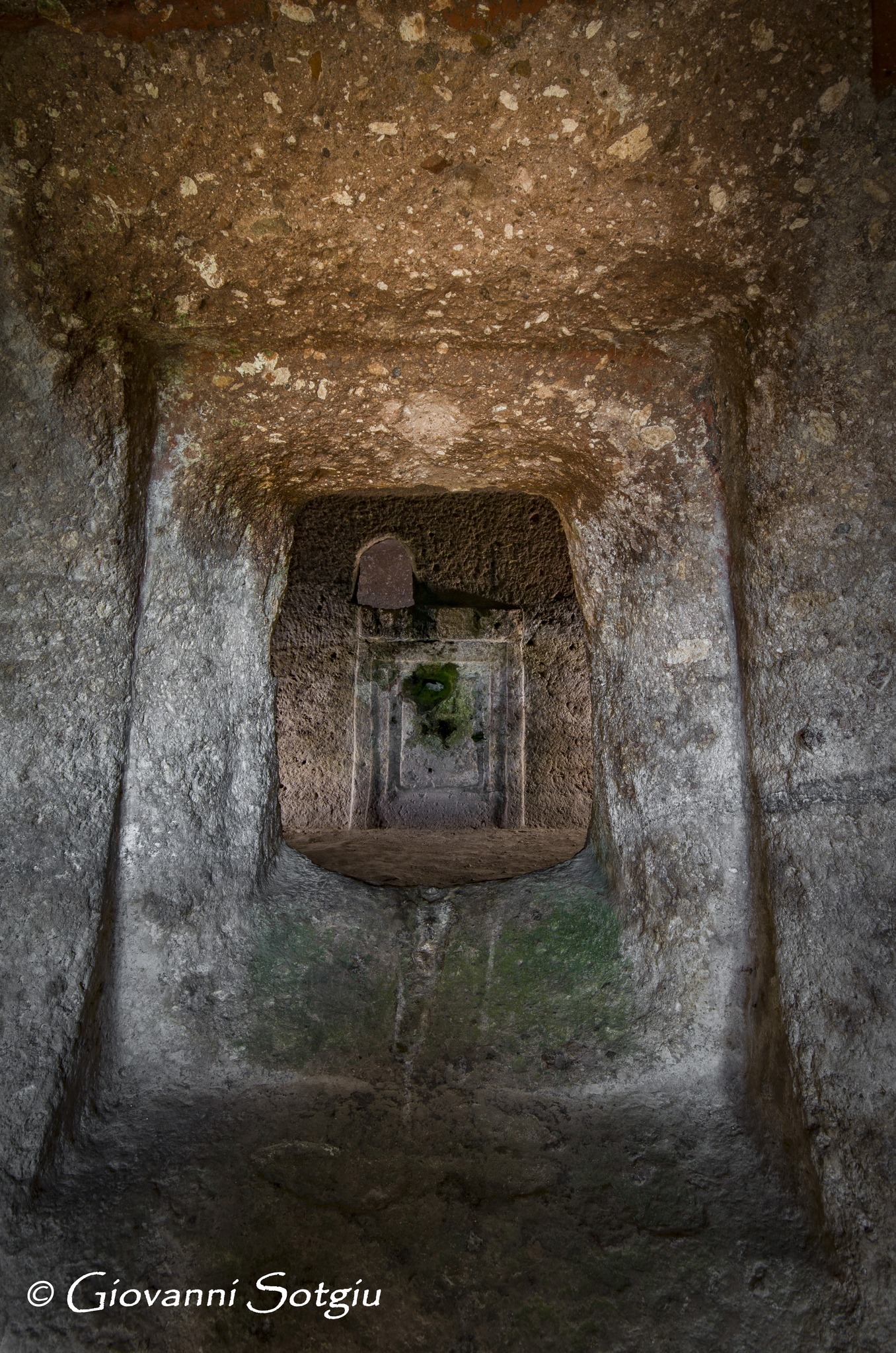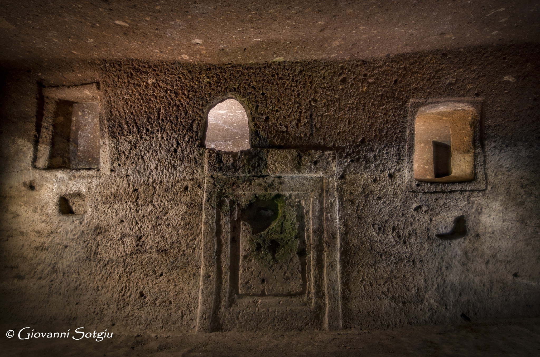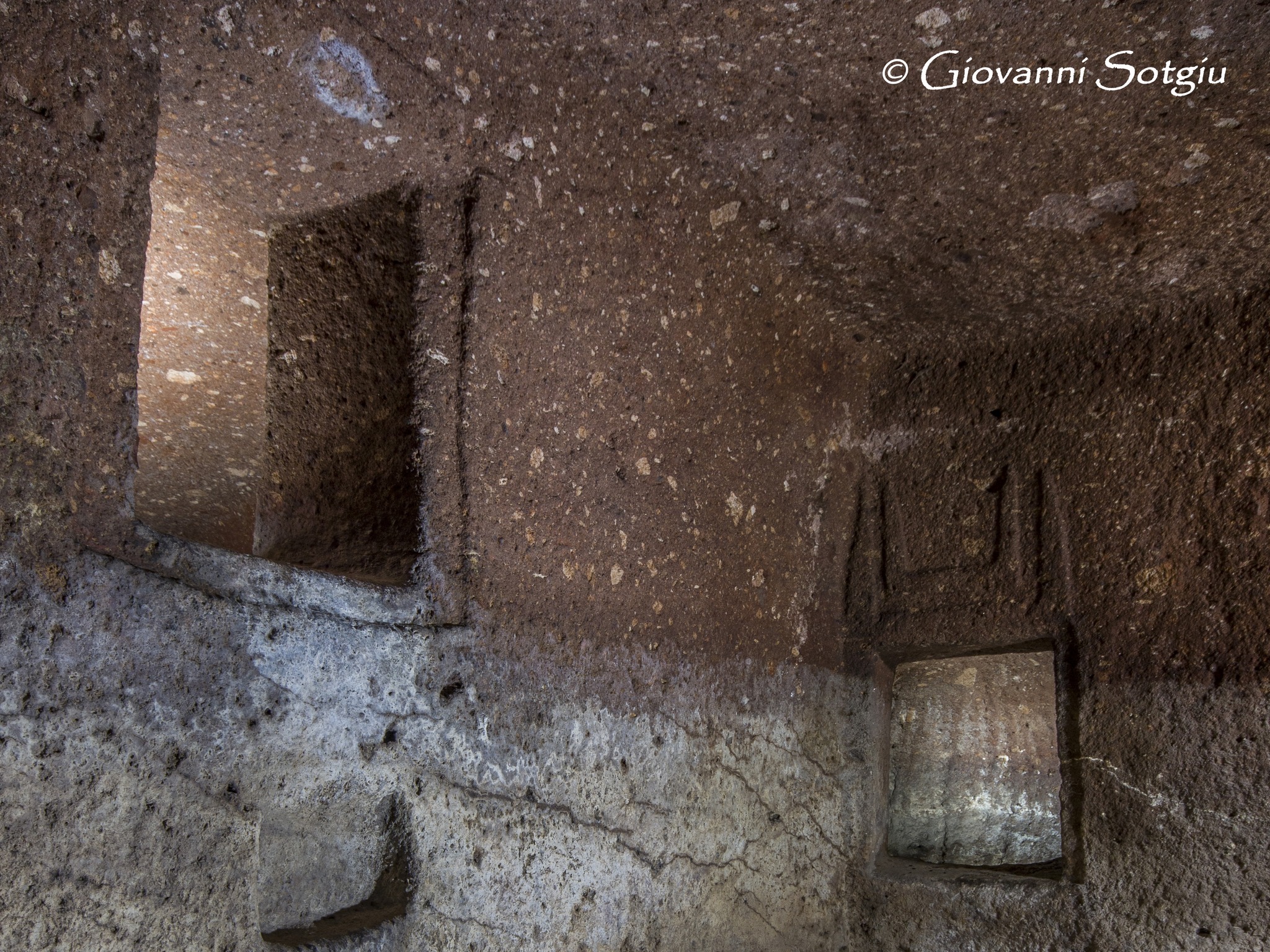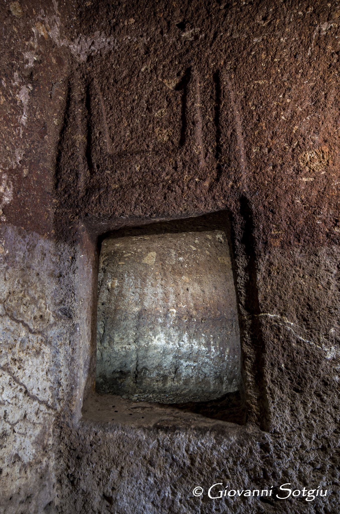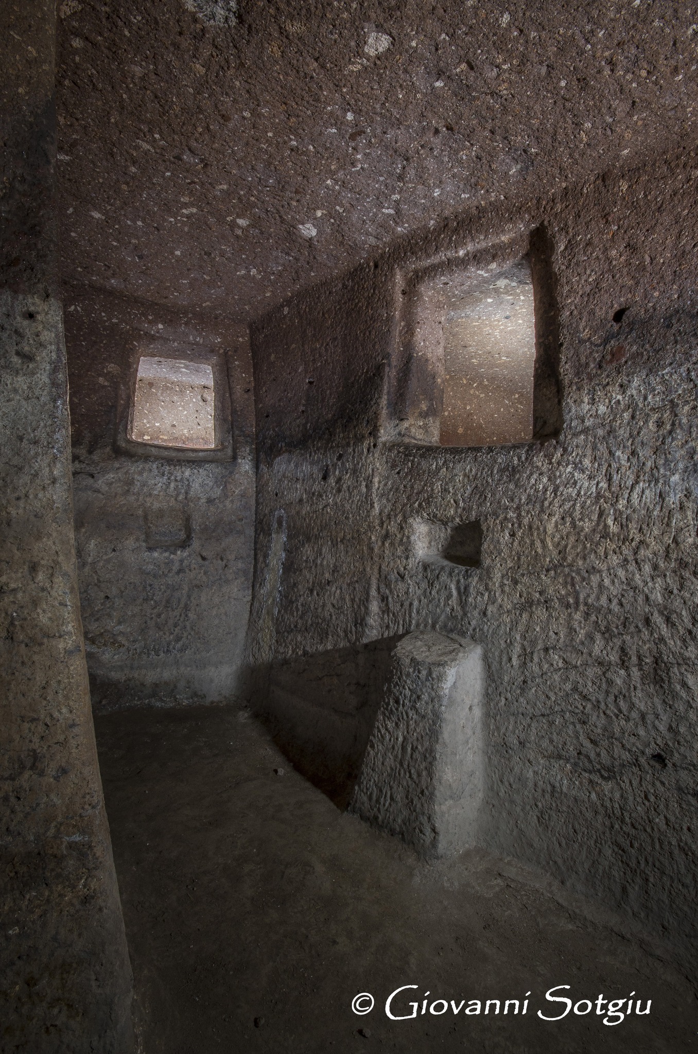 Si tratta di una tomba a prospetto architettonico, ossia una tomba ipogeica che riproduce in roccia la facciata esterna di una tomba di giganti nuragica, con stele centinata ed esedra. In epoca altomedievale fu riutilizzata come chiesetta rupestre (non si sa a chi intitolata).