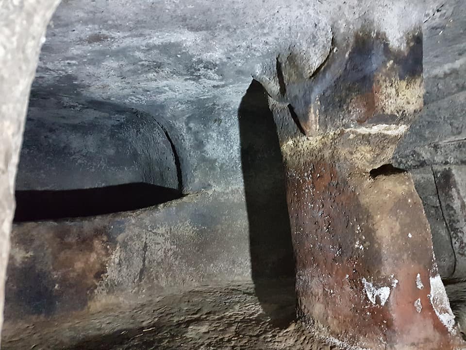 La domus 1, ha un impianto pluricellulare, con l’anticella semicircolare dalla quale si accede ad una prima cella trapezoidale, che presenta la particolarità di un pilastro centrale. Sulla sommità del pilastro è praticata un’ apertura che conduce ad un livello superiore, con due cellette sovrapposte alla precedente. La domus 2, ha un impianto pluricellulare, con corridoio, cella ellittica, vano centrale subrettangolare con nicchia e terza cella quadrangolare.