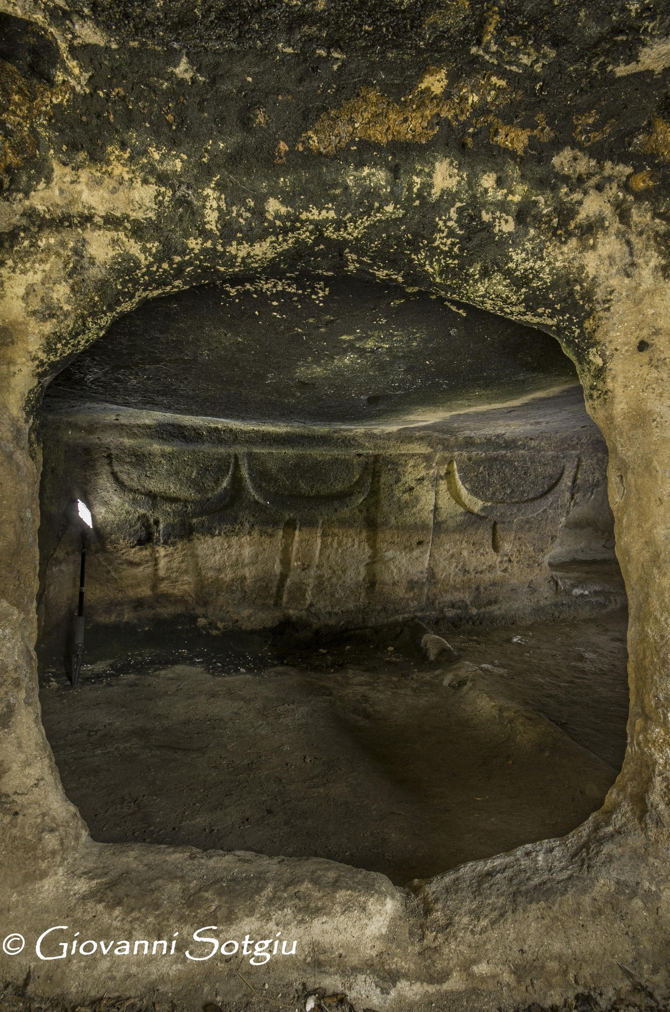 La necropoli comprende 11 domus de janas, generalmente pluricellulari, alcune delle quali caratterizzate da decorazioni architettoniche in rilievo.