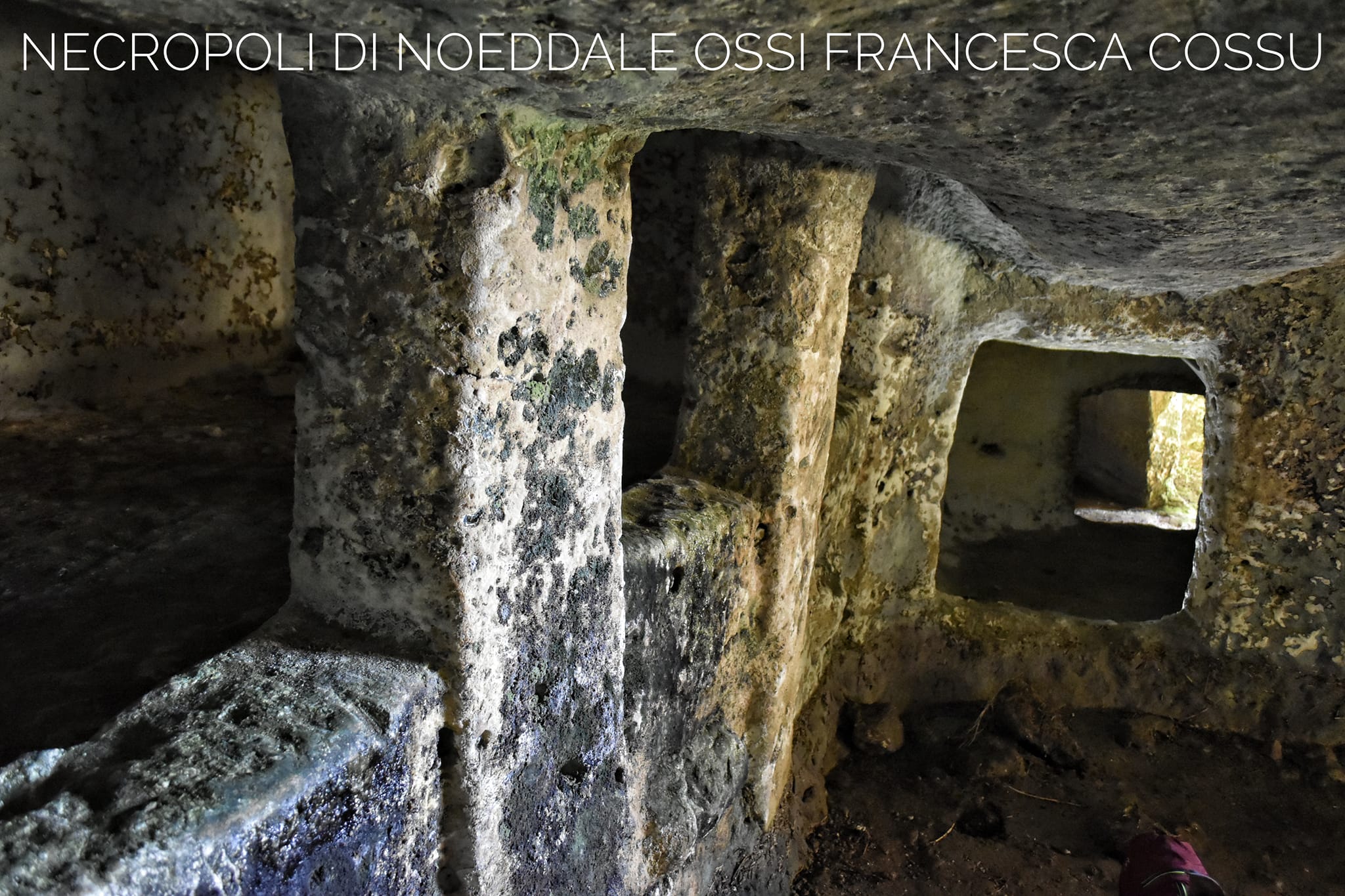 La ben nota necropoli di Noeddale si localizza presso il margine occidentale di una sella che degrada con notevole dislivello a ovest, sulla vallata di Sae. È costituita da sei ipogei, tre dei quali scavati su un affioramento calcareo lievemente inclinato, uno su una bassa parete sottostante, e altri due su fronte di roccia più alta. Due ipogei sono preceduti da brevi dromoi.