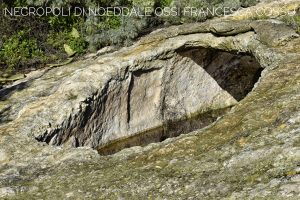Quattro tombe dei giganti, poste a poca distanza l’una dall’altra e in diverso stato di conservazione. Sono costruite con blocchi di calcare locale e misurano poco più di 10 metri di lunghezza, tranne una. A causa di scavi abusivi, non è stato restituito un contesto stratigrafico intatto. Tuttavia è stato possibile riconoscere una sequenza databile tra l’età del Bronzo medio avanzato e il Bronzo recente.