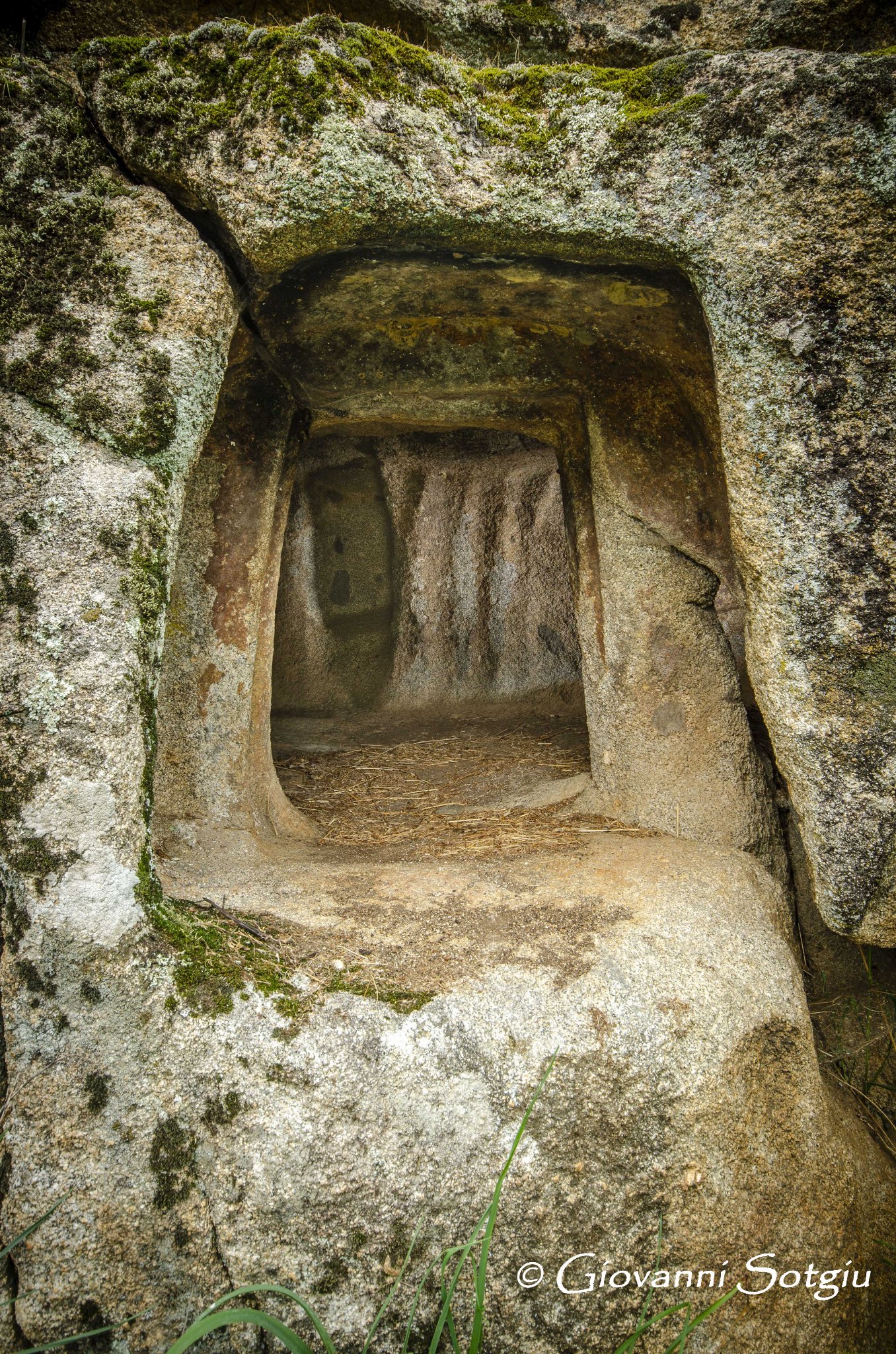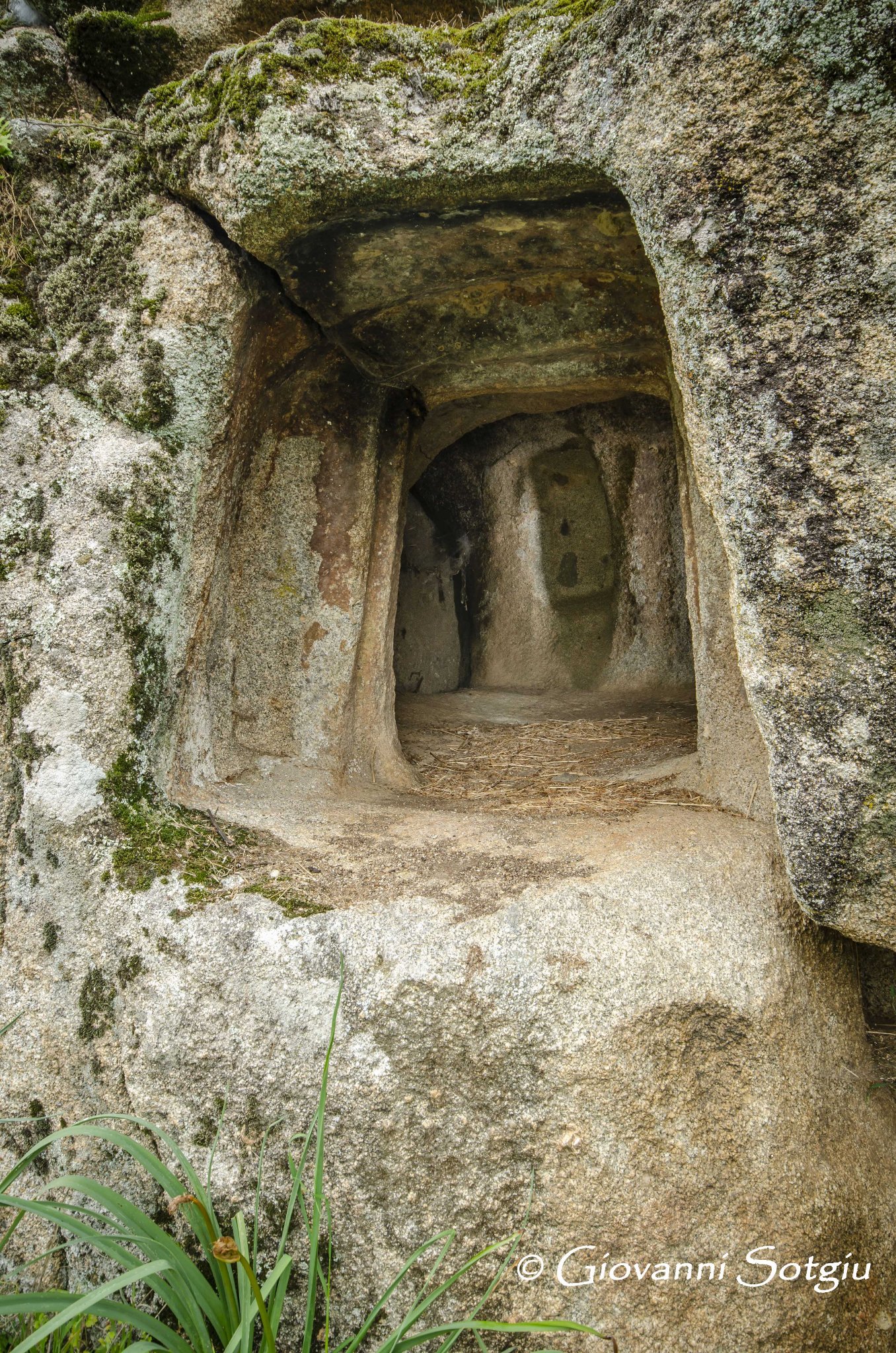 La necropoli è scavata in un affioramento granitico dell’altopiano di Buddusò. E’ costituita da 6 ipogei e datata al 3200-2800 a.C. Alcune domus presentano ambienti monocellulari mentre altre hanno pianta pluricellulare. Una delle domus riportano tracce di pittura murale rossa a bande parallele su fasce in rilievo.