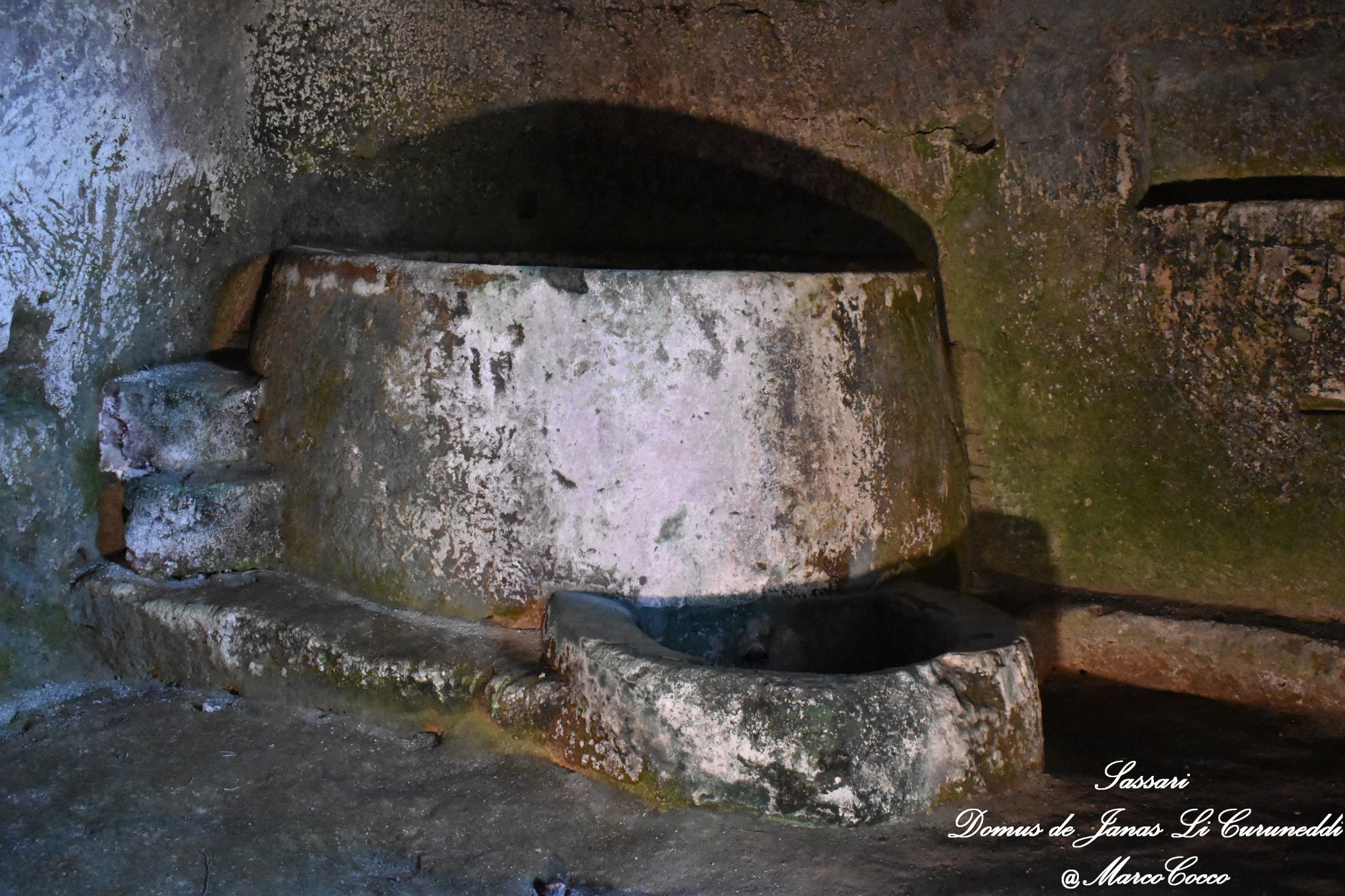 Gruppo di sette e più Domus de Janas poste sul passo, verso L”azienda Mariani, da cui si domina la piana di Santa Lucia e la sottostante necropoli di Sant”Andrea Priu e la valle dei nuraghi di Torralba. La tomba sette, della doppia spirale in ocra rossa, è stata restaurata di recente