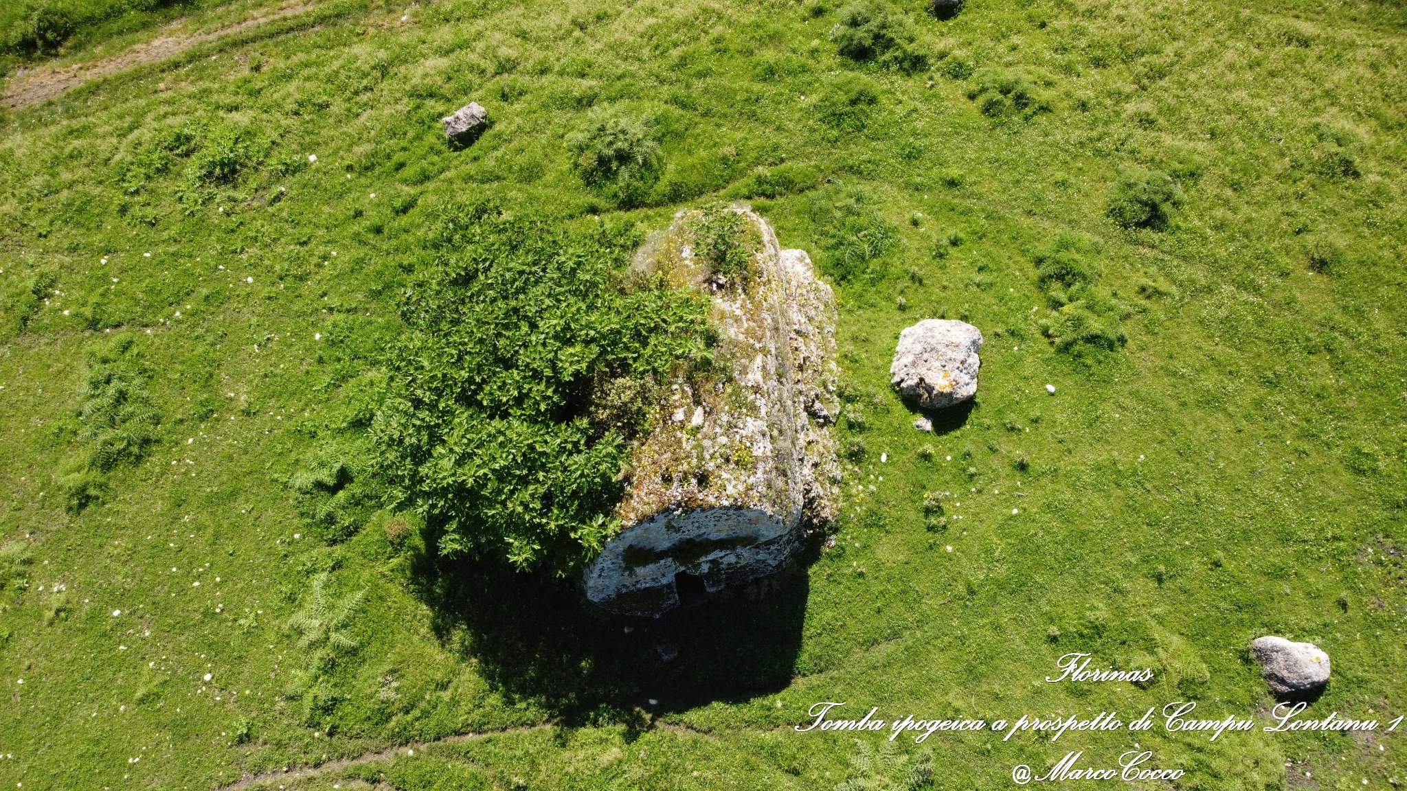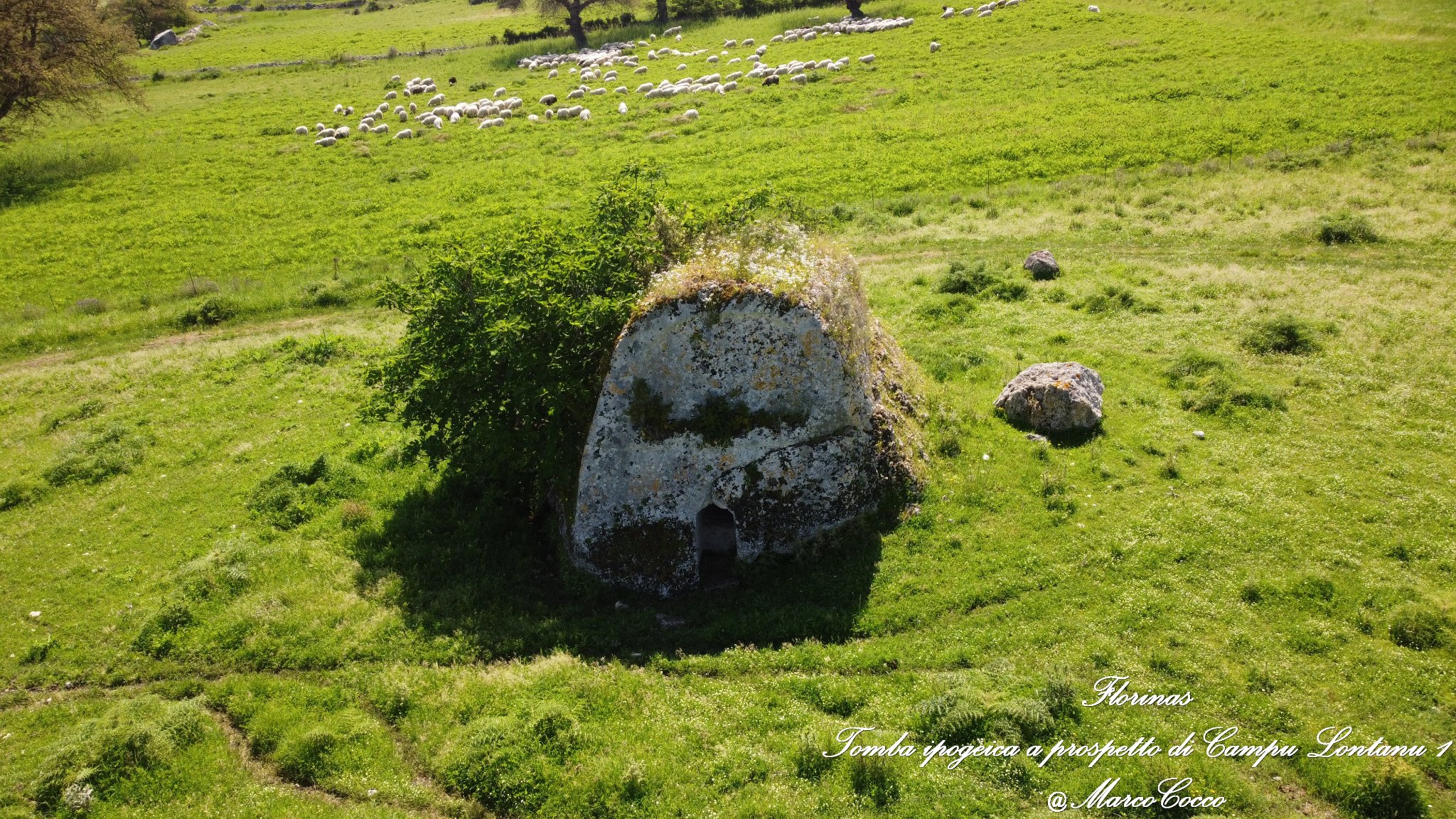 E’ ricavata in un masso erratico di calcare, lavorato anche all’esterno, di forma all’incirca trapezoidale. . Sulla facciata principale, dotata di ingresso, fu realizzata una “stele centinata” alta quasi 4 metri sulla cui sommità erano originariamente posti tre piccoli betili. Nella facciata posteriore è osservabile un altro piccolo ingresso, forse di epoca anteriore. La cultura materiale rinvenuta durante gli scavi è di tipo Bonnanaro (prima età del bronzo).