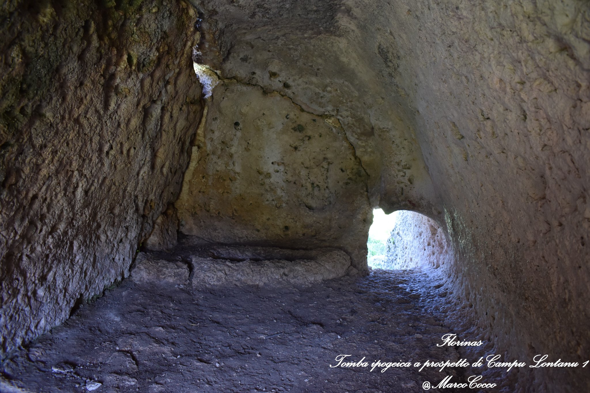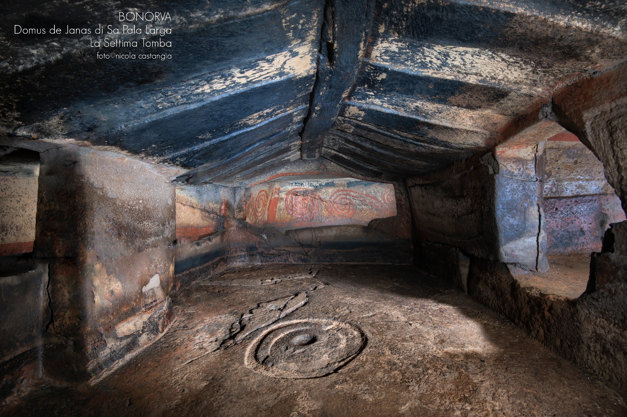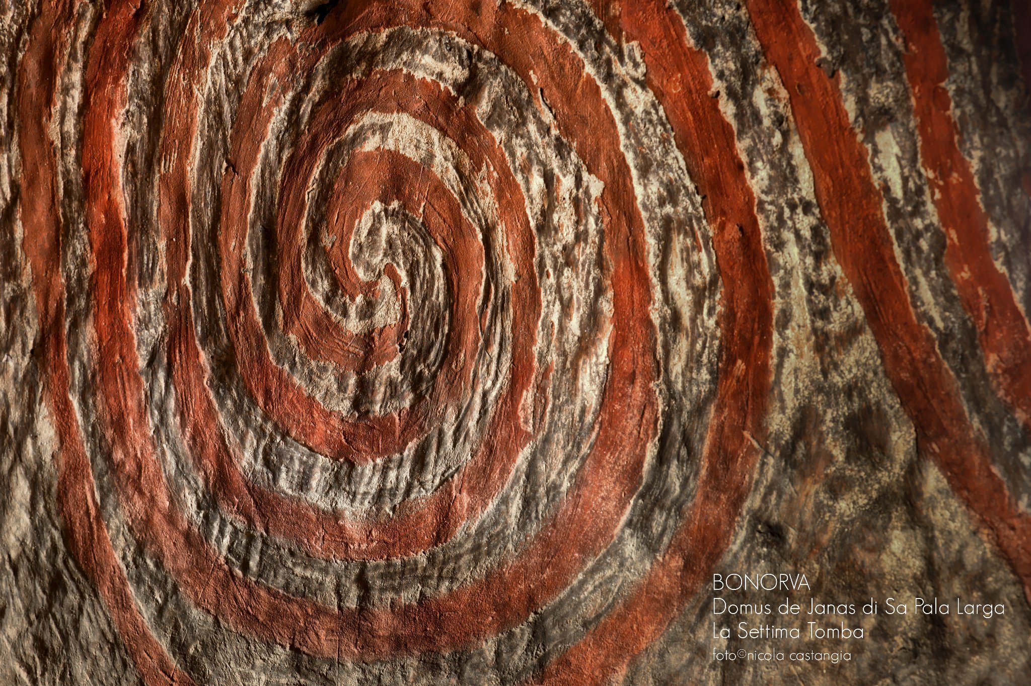 Gruppo di sette e più Domus de Janas poste sul passo, verso L’azienda Mariani, da cui si domina la piana di Santa Lucia e la sottostante necropoli di Sant”Andrea Priu e la valle dei nuraghi di Torralba. La tomba sette, della doppia spirale in ocra rossa, è stata restaurata di recente