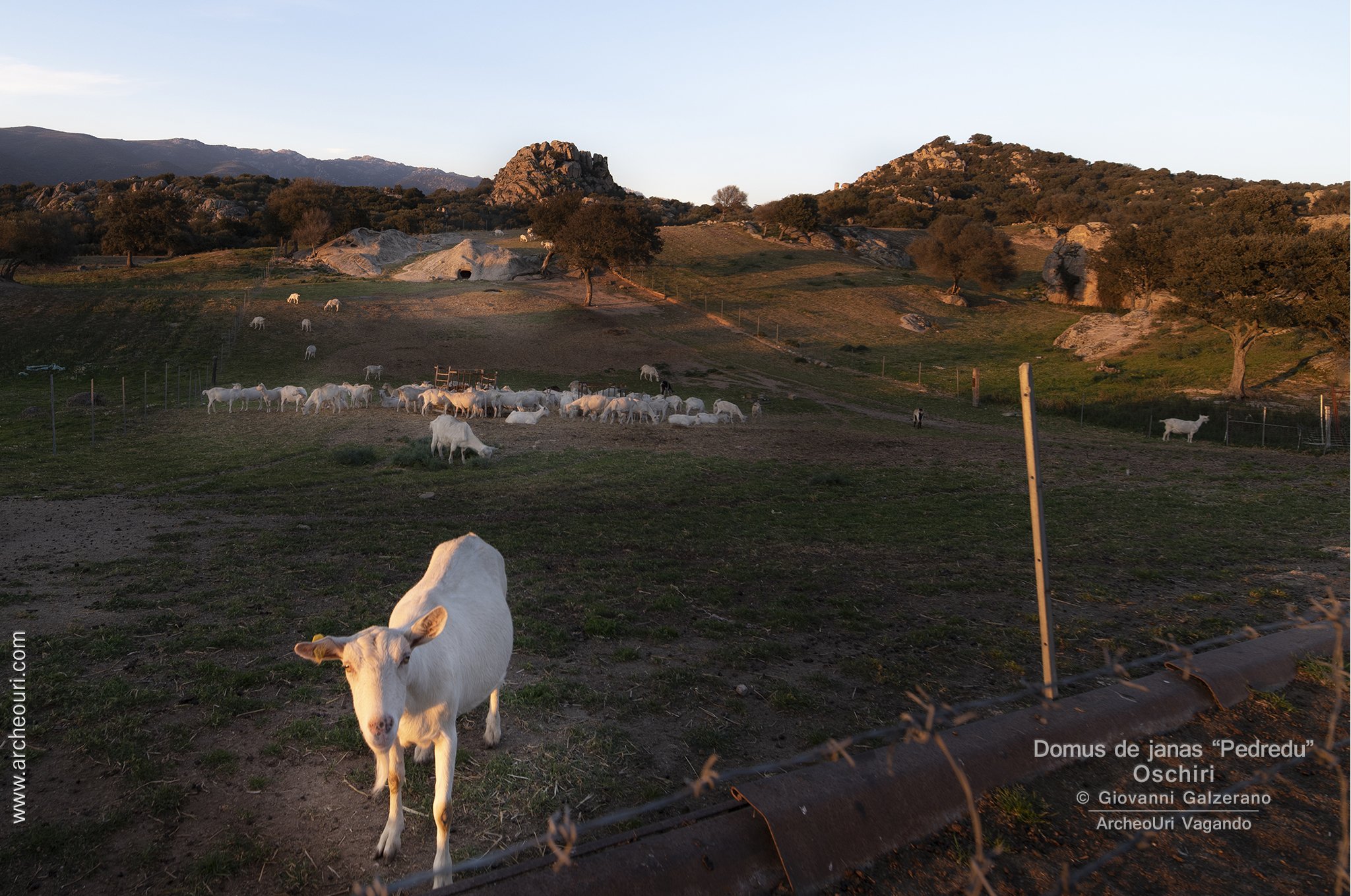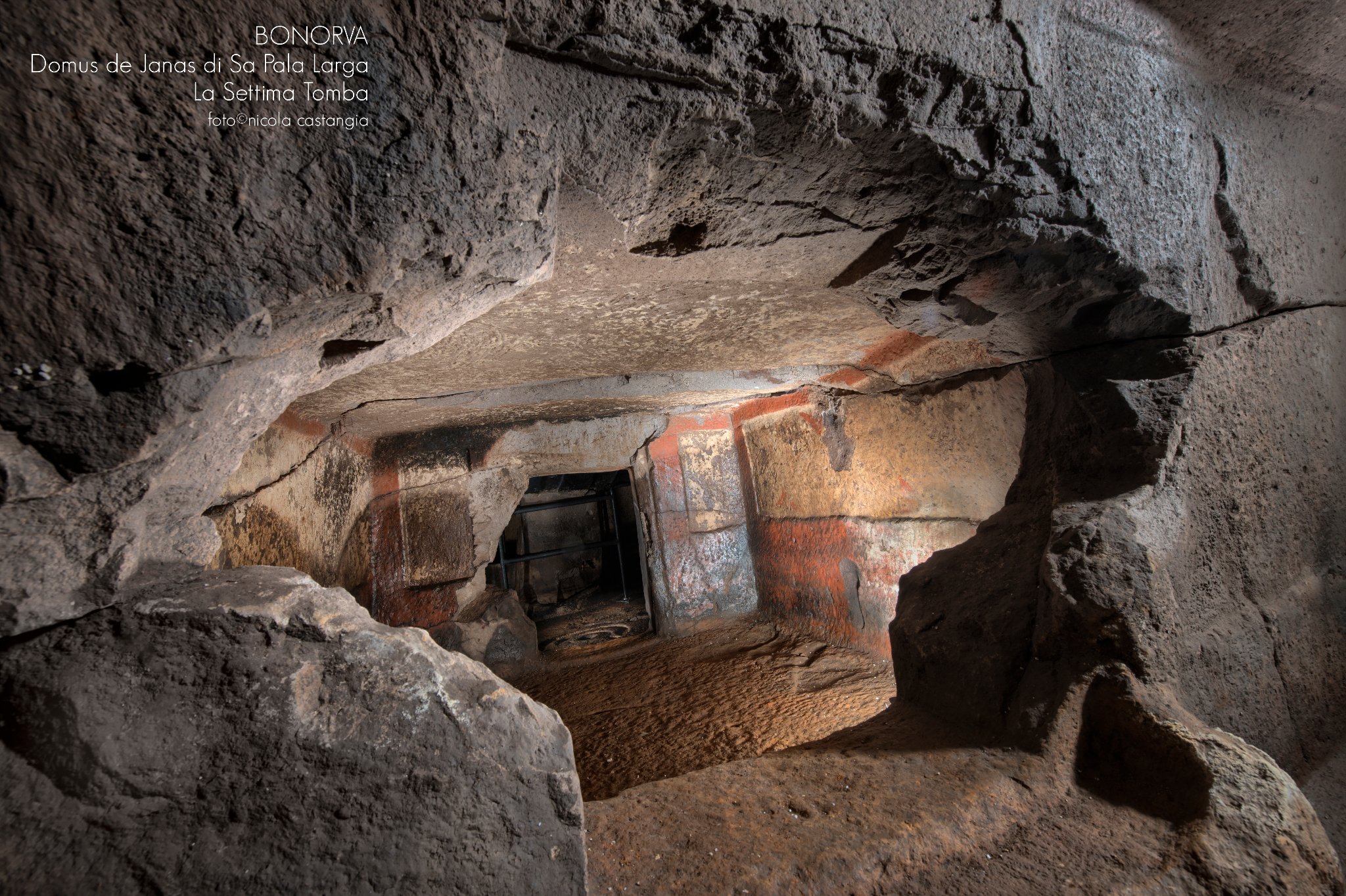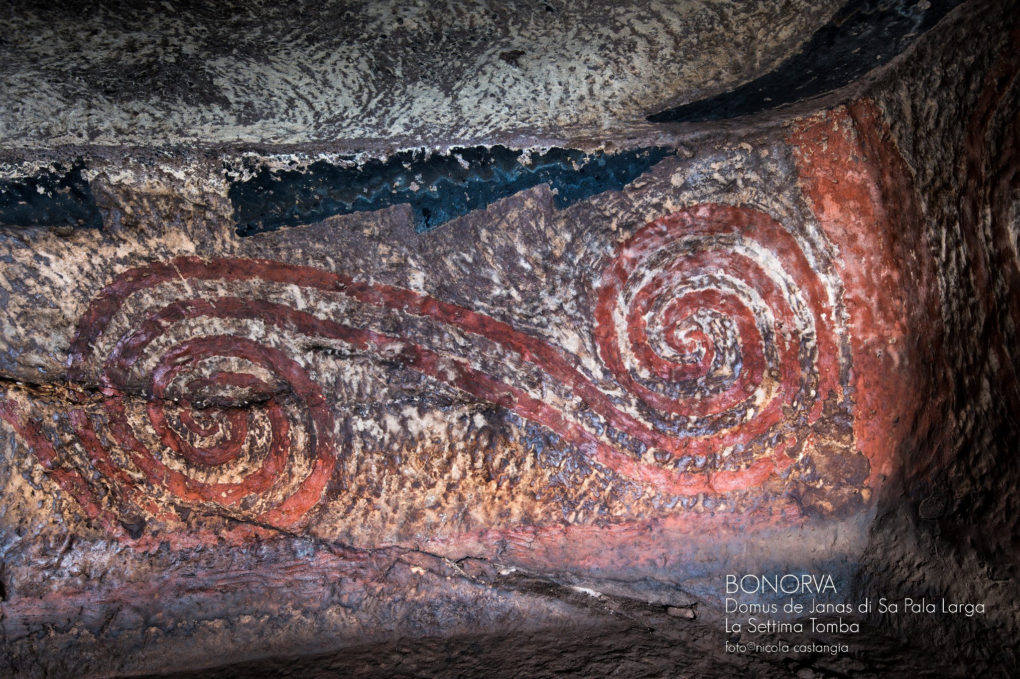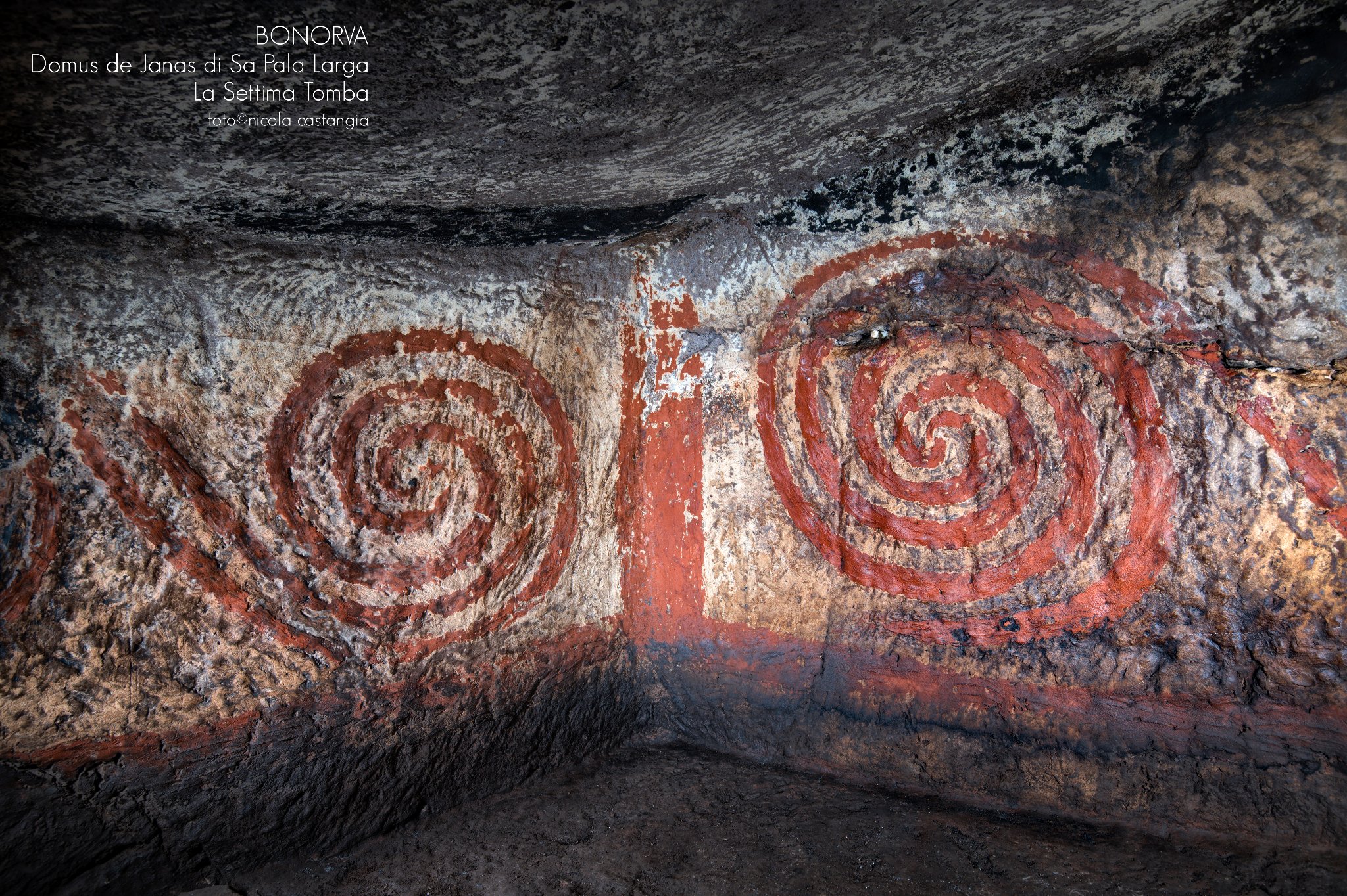 Gruppo di sette e più Domus de Janas poste sul passo, verso L’azienda Mariani, da cui si domina la piana di Santa Lucia e la sottostante necropoli di Sant”Andrea Priu e la valle dei nuraghi di Torralba. La tomba sette, della doppia spirale in ocra rossa, è stata restaurata di recente