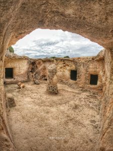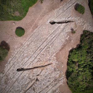 SI tratta di una vasta necropoli di Domus de Janas, realizzata su un ammasso di calcare. Attorno sono visibili degli interessanti Cart Ruts. Alcune tombe sono decorate con protomi taurini.