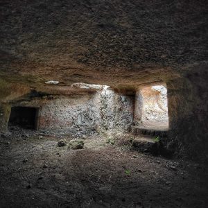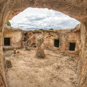 La necropoli è costituita da quattro domus de janas, di cui particolarmente nota la “tomba dell’architettura dipinta”, caratterizzata da decorazioni a rilievo e dipinte. L’ipogeo, con sviluppo planimetrico a “T”, è costituito da un lungo “dromos” terminante in un atrio rettangolare, da un’anticella, da una cella centrale e da due vani laterali.