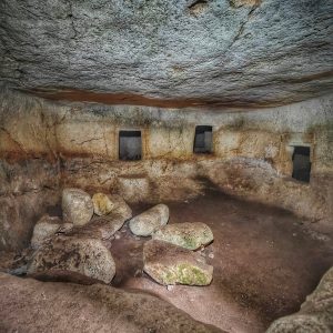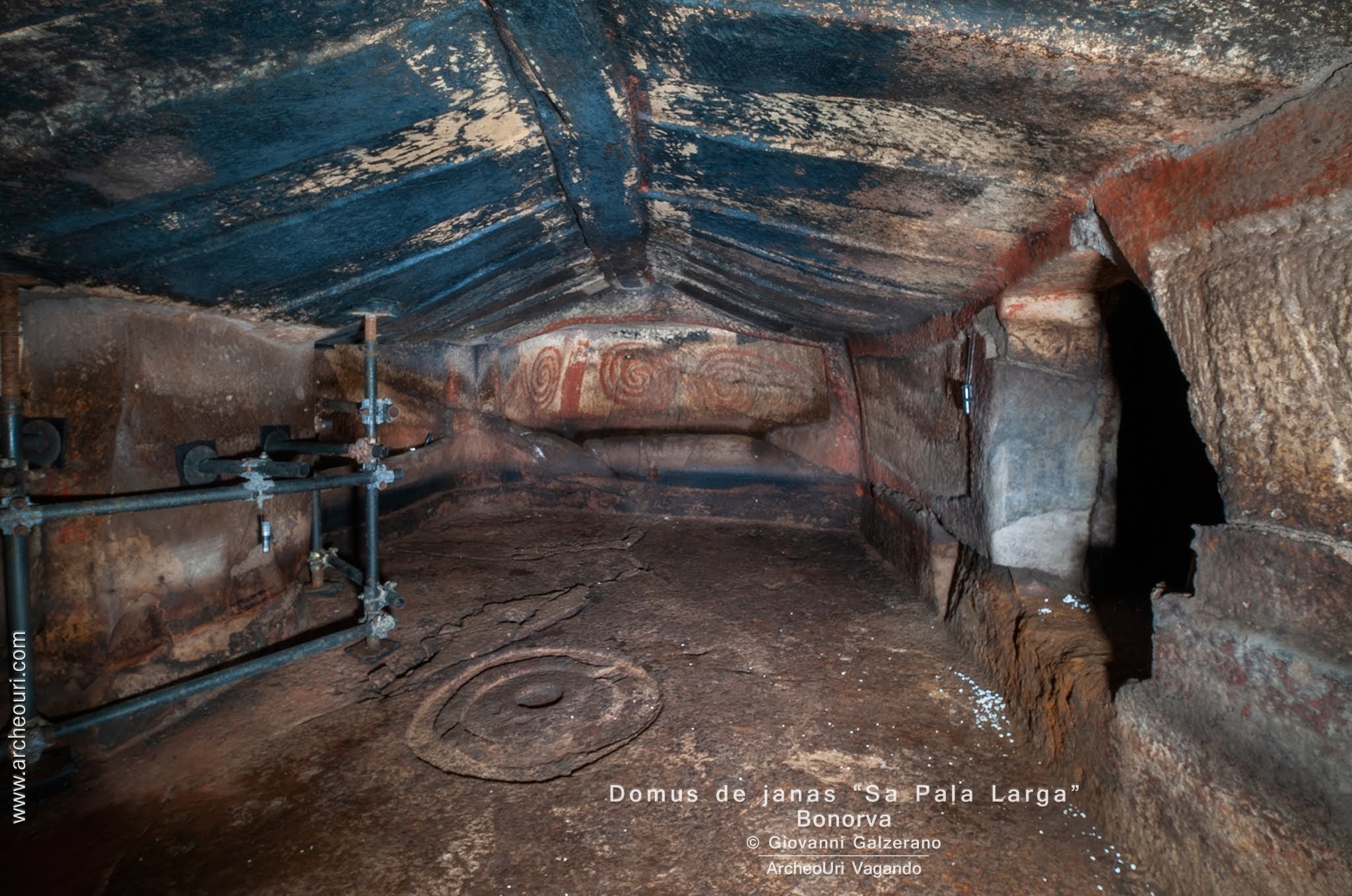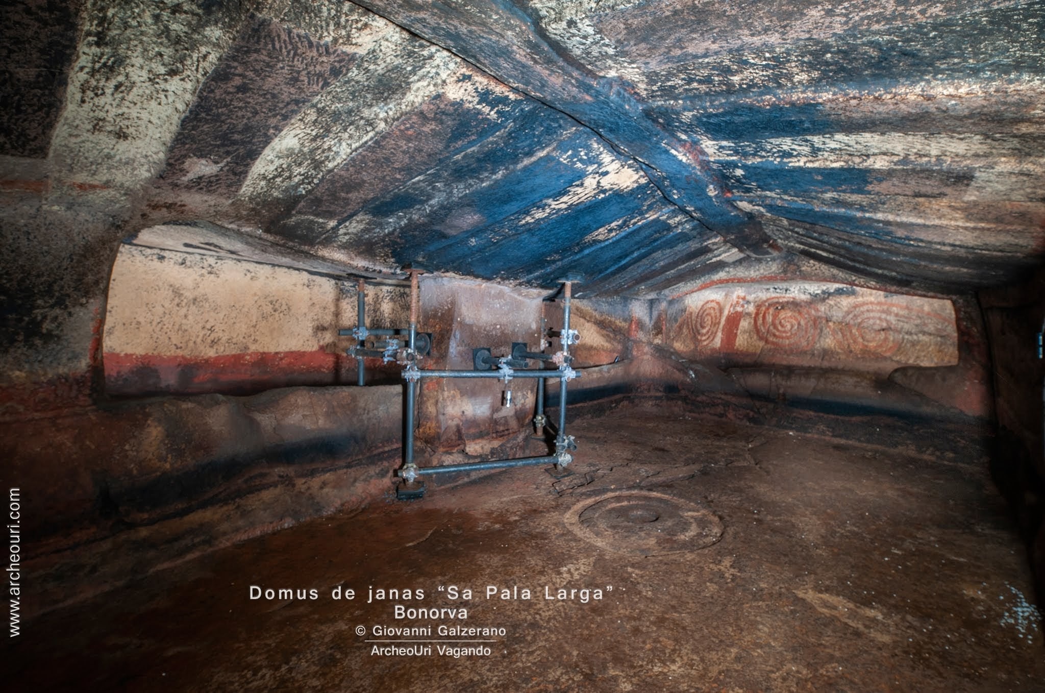 Gruppo di sette e più Domus de Janas poste sul passo, verso L”azienda Mariani, da cui si domina la piana di Santa Lucia e la sottostante necropoli di Sant”Andrea Priu e la valle dei nuraghi di Torralba. La tomba sette, della doppia spirale in ocra rossa, è stata restaurata di recente
