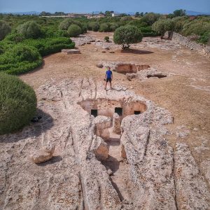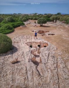 SI tratta di una vasta necropoli di Domus de Janas, realizzata su un ammasso di calcare. Attorno sono visibili degli interessanti Cart Ruts. Alcune tombe sono decorate con protomi taurini.