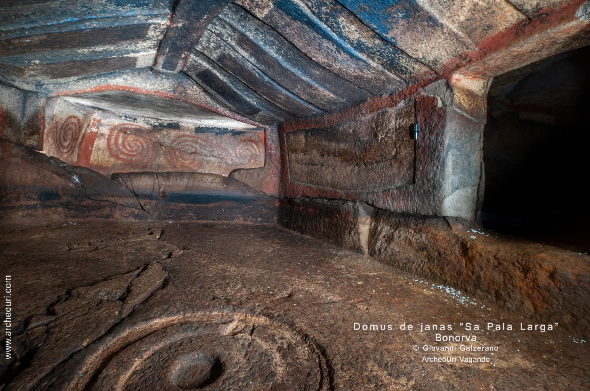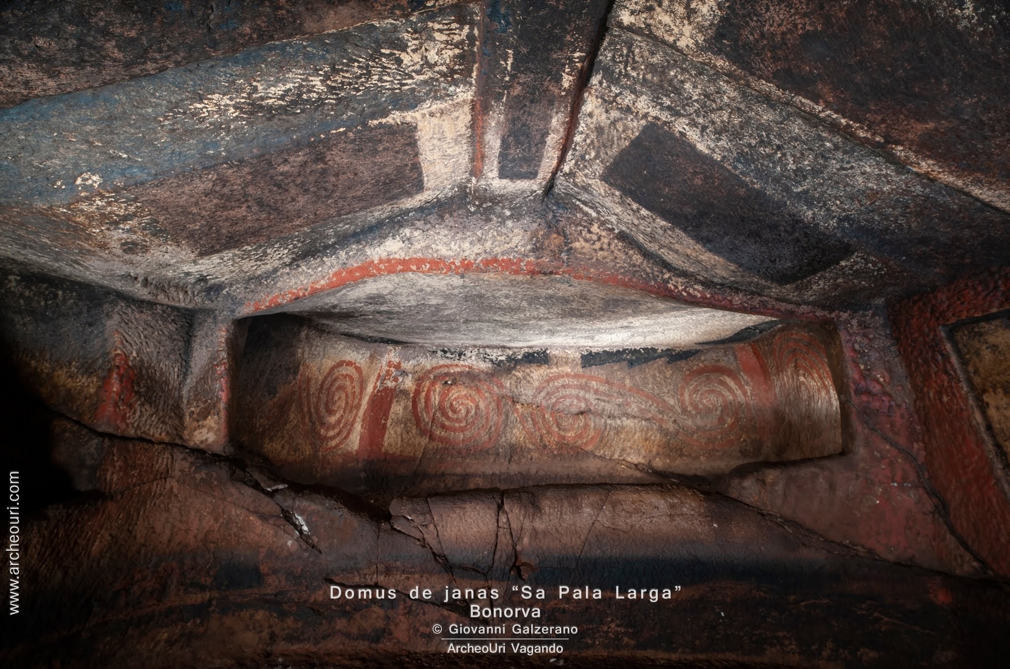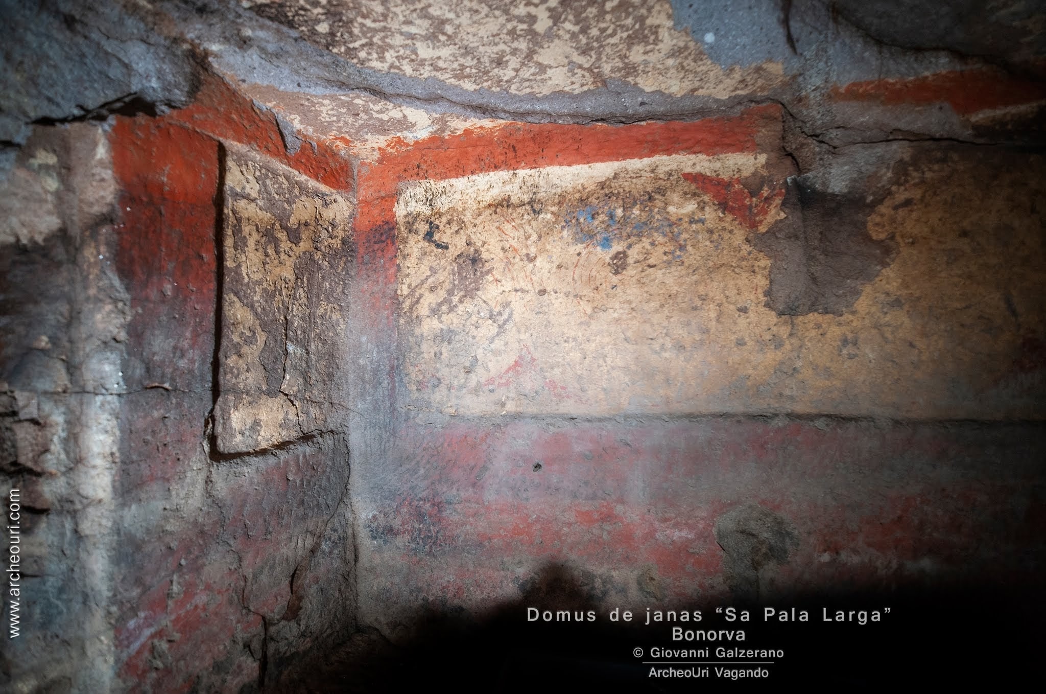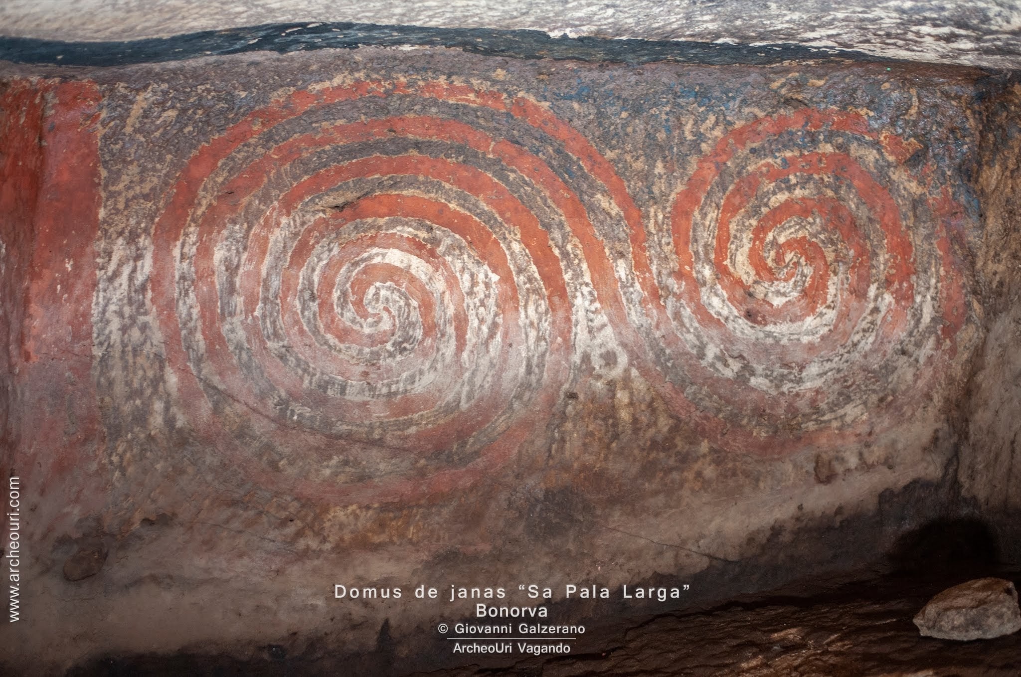 Gruppo di sette e più Domus de Janas poste sul passo, verso L”azienda Mariani, da cui si domina la piana di Santa Lucia e la sottostante necropoli di Sant”Andrea Priu e la valle dei nuraghi di Torralba. La tomba sette, della doppia spirale in ocra rossa, è stata restaurata di recente