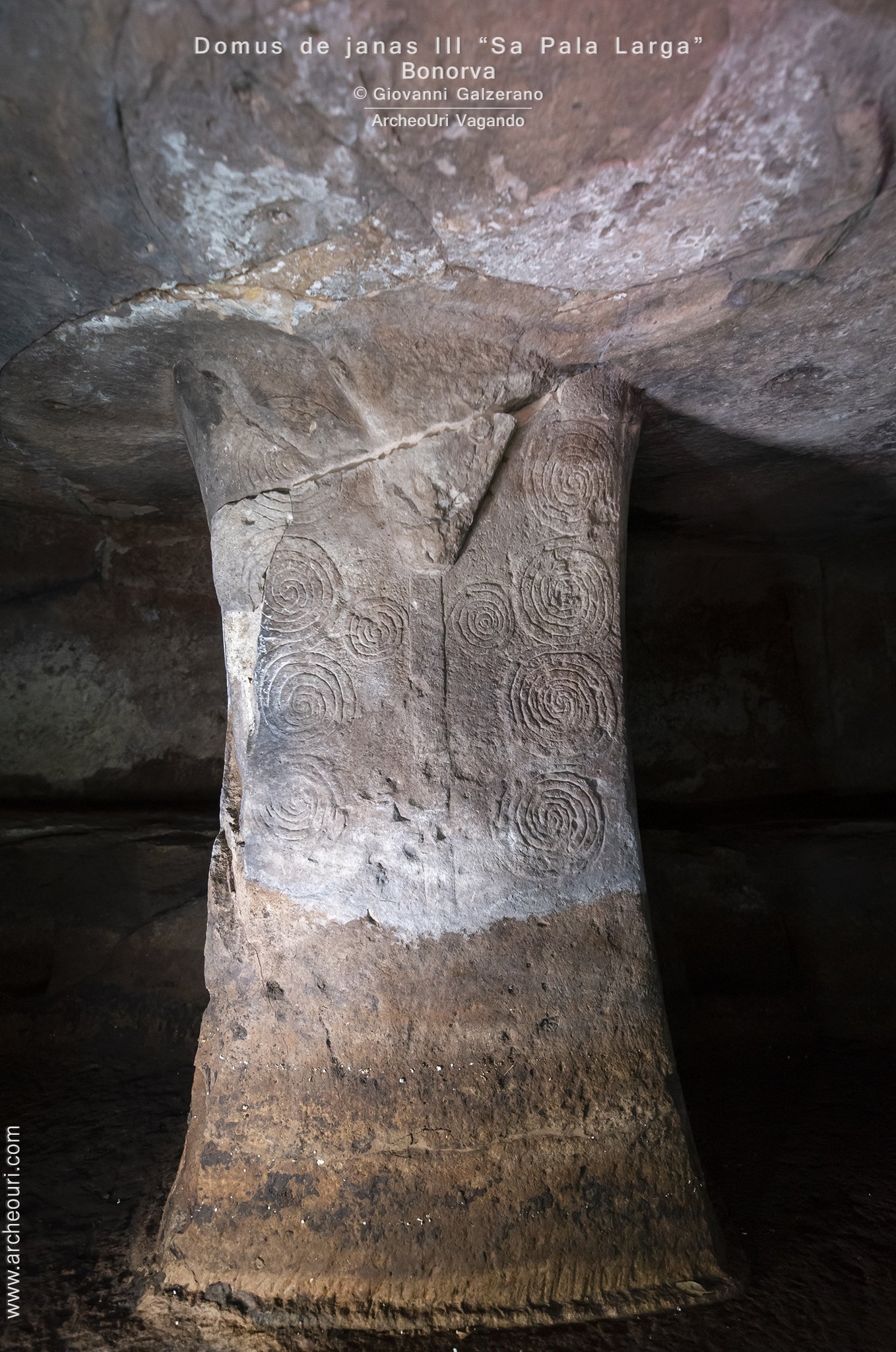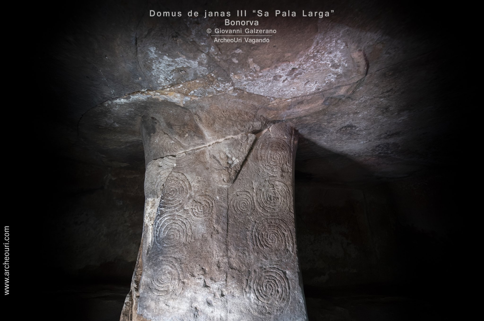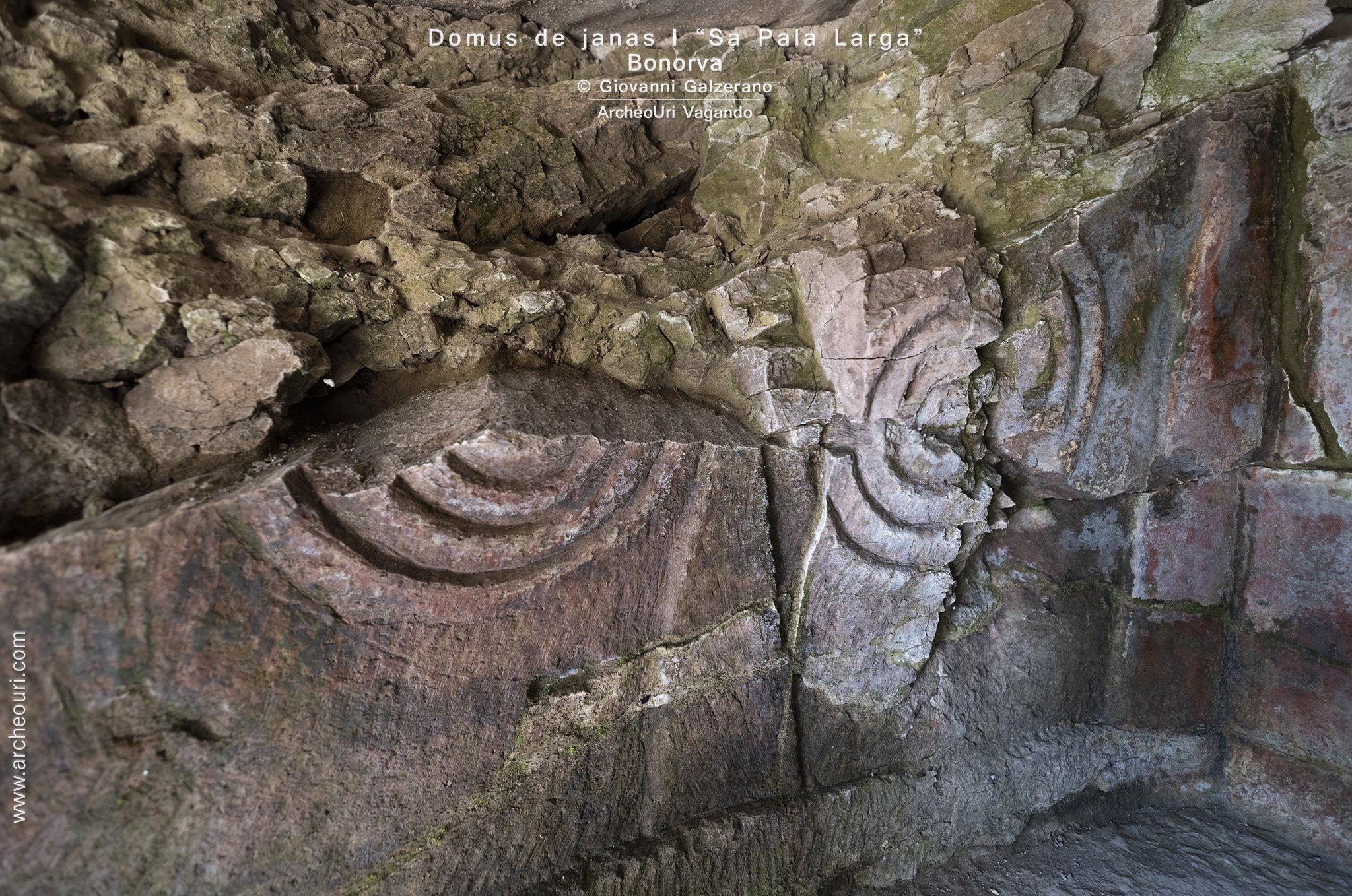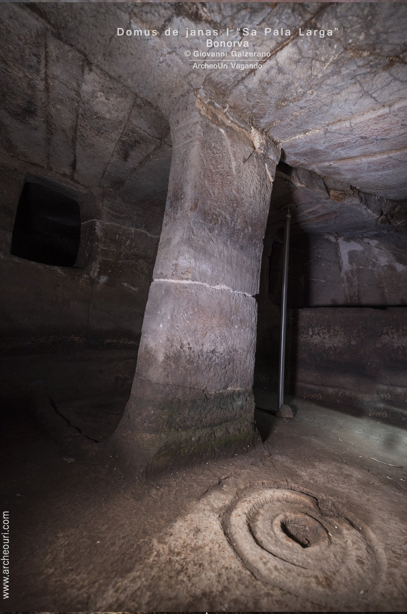 Gruppo di sette e più Domus de Janas poste sul passo, verso L”azienda Mariani, da cui si domina la piana di Santa Lucia e la sottostante necropoli di Sant”Andrea Priu e la valle dei nuraghi di Torralba. La tomba sette, della doppia spirale in ocra rossa, è stata restaurata di recente