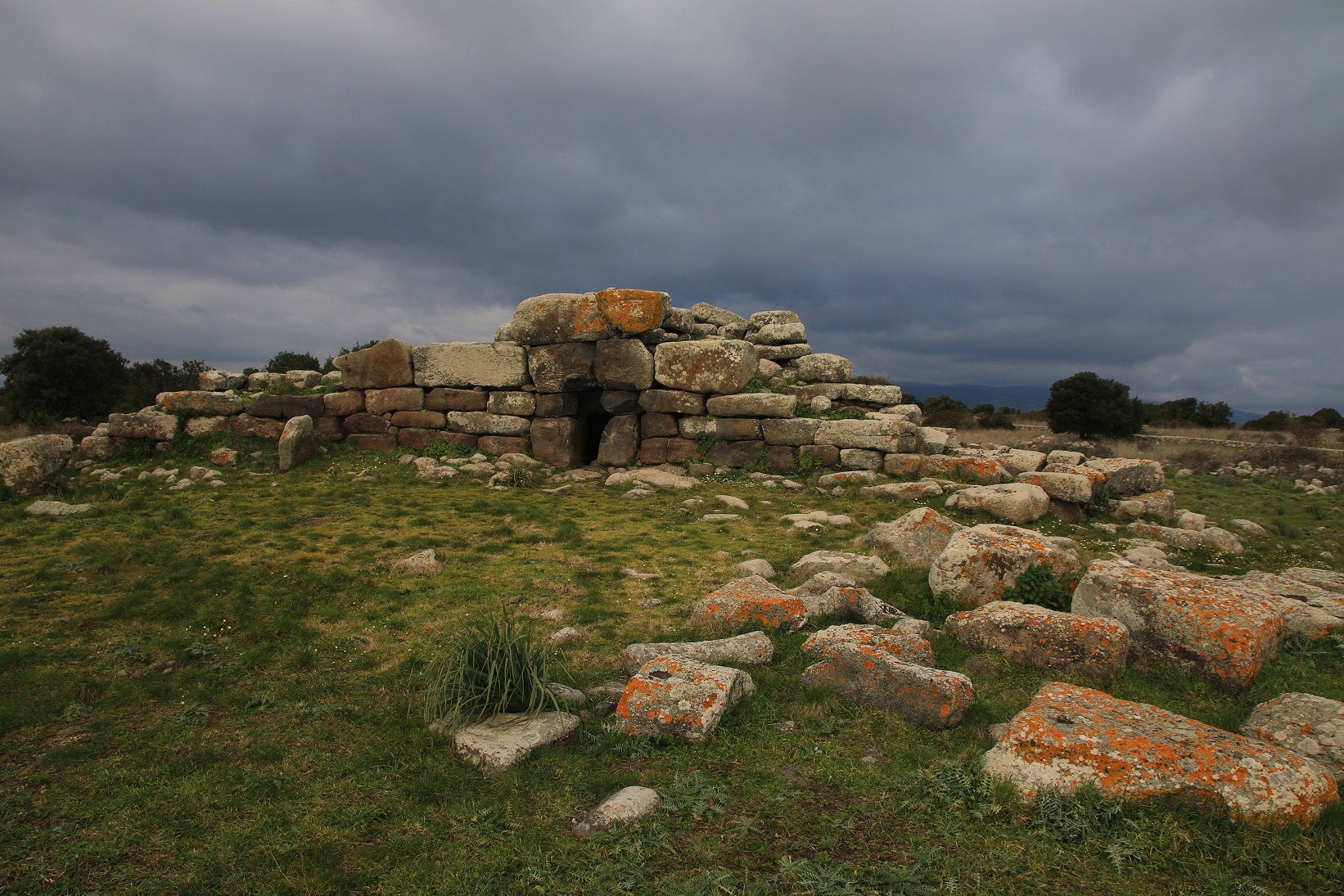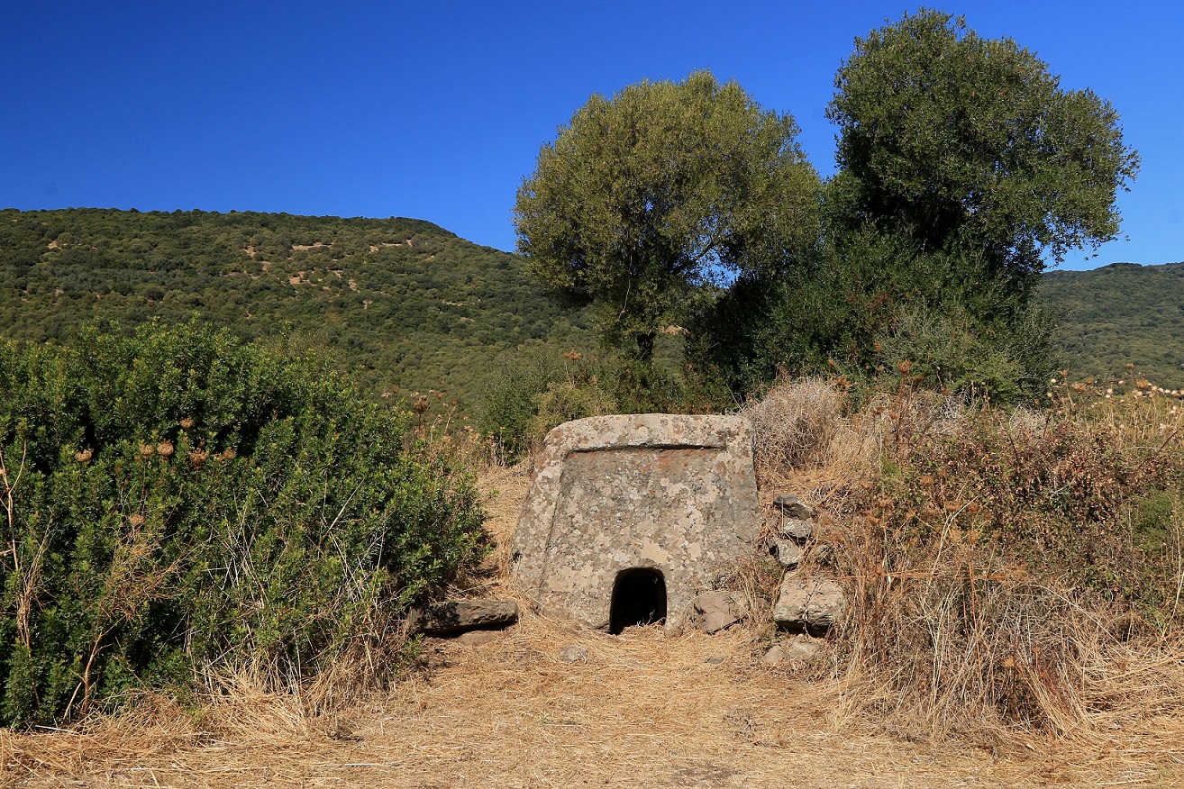Tombe collettive di epoca nuragica 1600 1800 a.c. edificate nella fase finale del bronzo medio 1500 a.c. e utilizzate fino alla fase del bronzo finale 1100, 900 a.c. La camera funeraria allungata con pareti laterali in blocchi di calcare disposti a filari aggettanti, delimitata sul fondo da una lastra posta a coltello. La muratura esterna è absidata nella parte posteriore. L’ingresso rivolto ad est della tomba n°1 e a sud est della tomba n° 2, è preceduto da uno spazio semicircolare a esedra. Studio C&C architets
