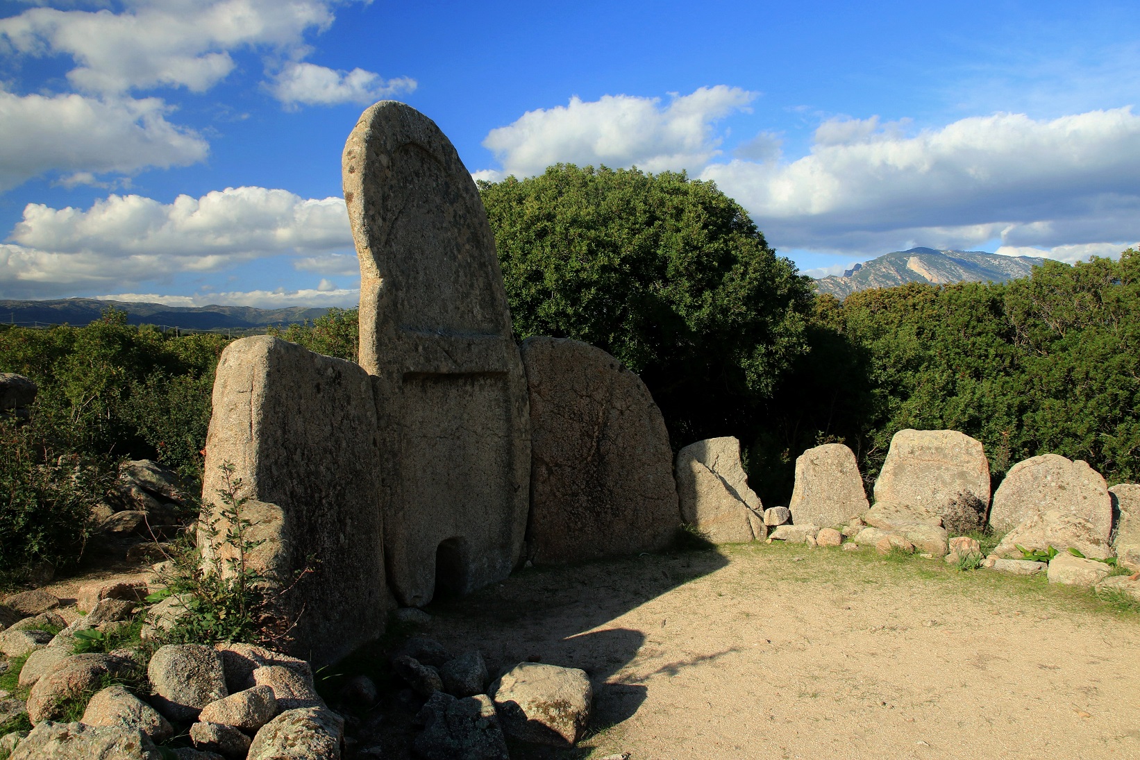 Questa tomba di tipo dolmenico, del periodo del Bronzo Antico, si presenta in ottimo stato di conservazione, infatti conserva quasi intatto il corridoio funebre con copertura a piattabanda, cioè costituita da lastre di pietra disposte orizzontalmente lungo le pareti del corridoio. La grande stele è costituita da un monolite centinato, in cui è scavato il piccolo portello d’accesso alla camera funeraria. L’esedra conserva ancora alcune pietre infisse come erano in origine. (www.ilportalesardo.it)
