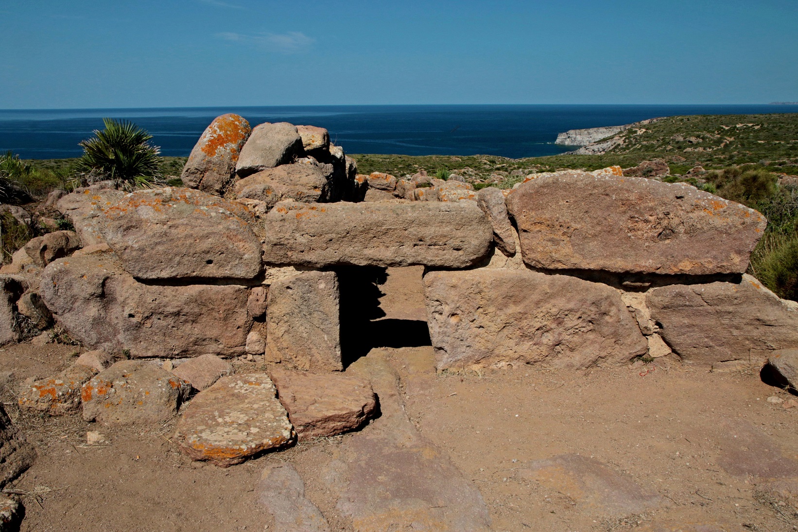 La tomba dei giganti Su Niu de su Crobu sorge su un’altura rocciosa, non lontano dal mare, in località Sa corona de su crabì. La sepoltura, del tipo “a filari”, è costituita da un corridoio funerario absidato lungo poco più di 10 m. e largo in media 1,20 m.; le pietre che lo compongono sono poco lavorate, disposte a file irregolari e consolidate con numerose zeppe. Comune di Sant’Antioco)