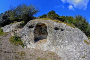 Si tratta di una serie di ambienti aperti sul fianco occidentale di una collinetta di roccia calcarea. Il nucleo principale, frutto di varie trasformazioni relative a diverse fasi dell’utilizzo nel corso dei secoli, è costituito da tre ampie celle collegate fra loro e disposte in successione da Nord a Sud. Gli ambienti si affacciano su uno stretto terrapieno la parete di roccia presenta, due strette gradinate attraverso le quali è possibile raggiungere il pianoro soprastante.