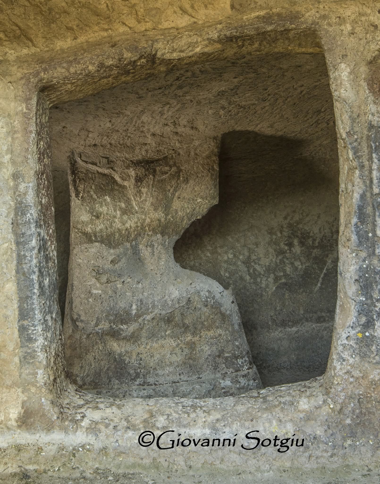 La necropoli Sas Arzolas de Goi è riconducibile al periodo della Cultura di Ozieri (3200-2800 a.C.). Le domus de janas finora individuate sono 5 e si trovano nel pendio di una collina trachitica colpita largamente dai lavori di cava. La tomba 1 è molto interessante poiché mostra scolpite, sopra il portello d’ingresso e sul pilastro all’interno della camera funeraria, due protomi taurine complete di orecchie e testa. Le corna presenti all’ingresso sono scolpite a rilievo convesso