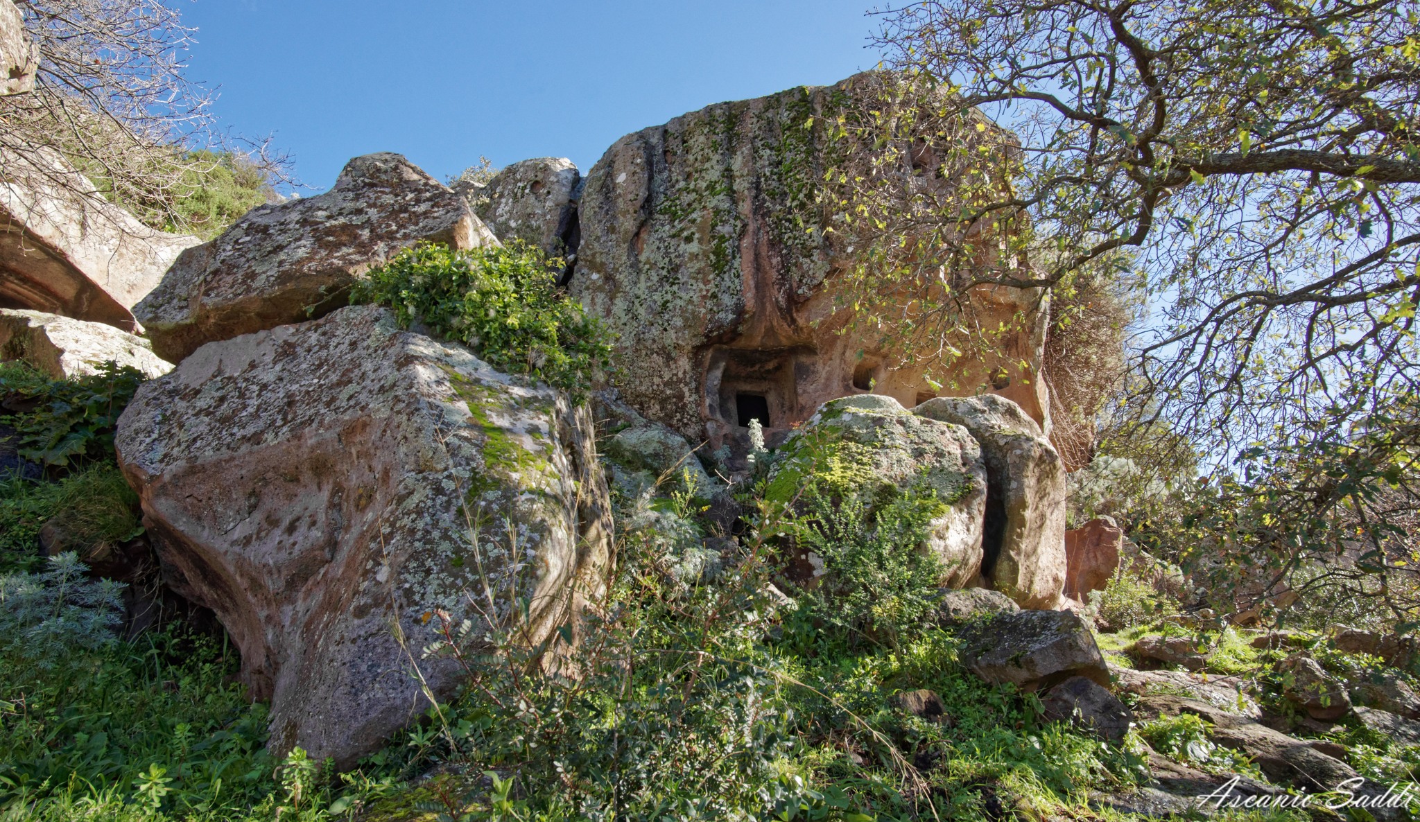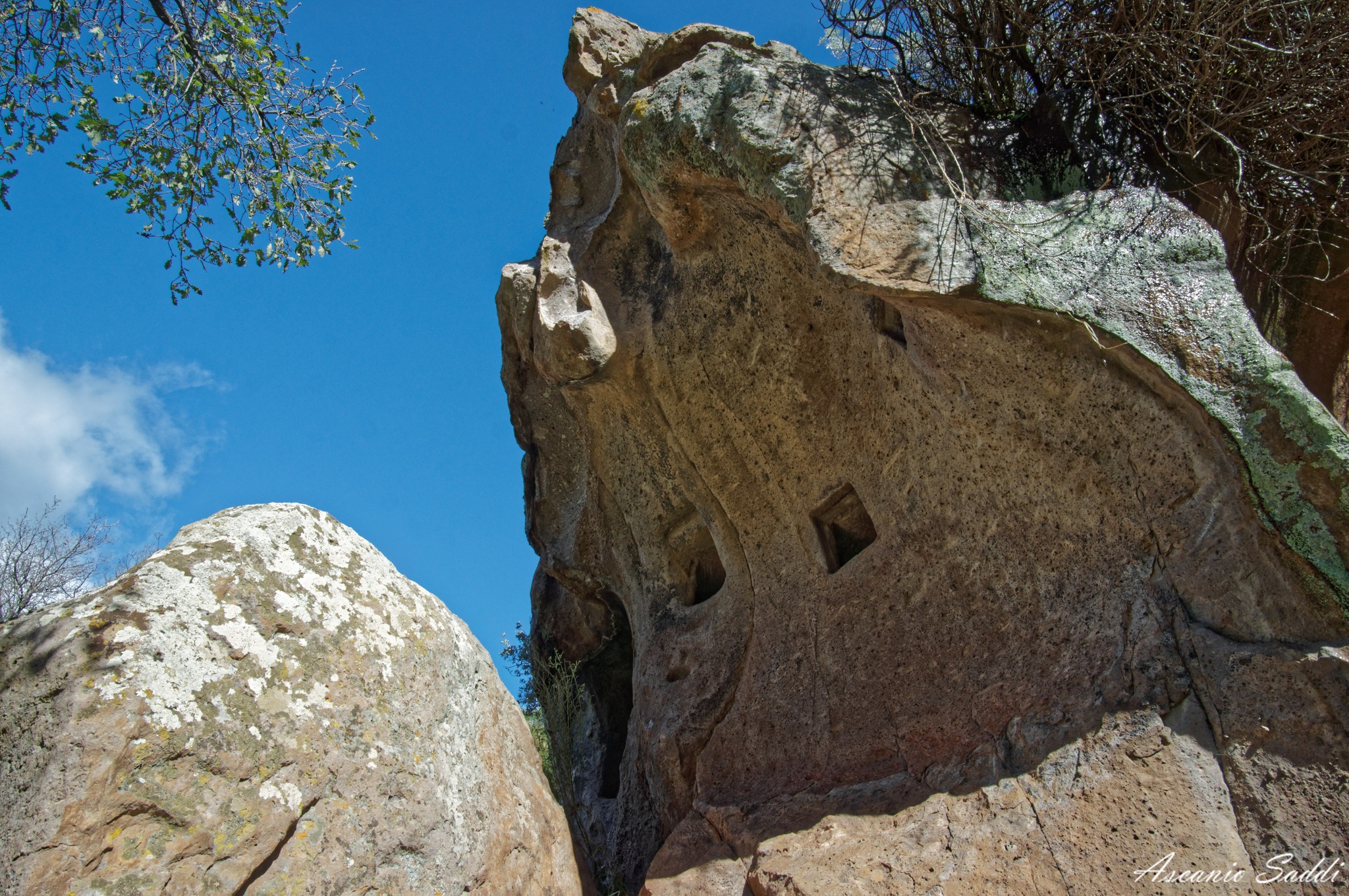Gli ipogei presenti nel sito sono due: la prima tomba è quella più interessante perché mostra una serie di incisioni sopra il portello d’accesso; la seconda si trova poco più in là, in prossimità del ciglio della strada ed ha l’ambiente interno quasi del tutto allagato. Entrambe le sepolture sono a pozzetto e risalirebbero al 3000 a. C circa.
