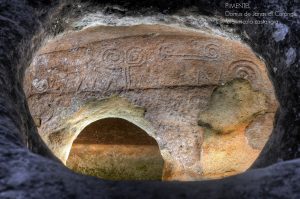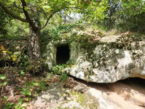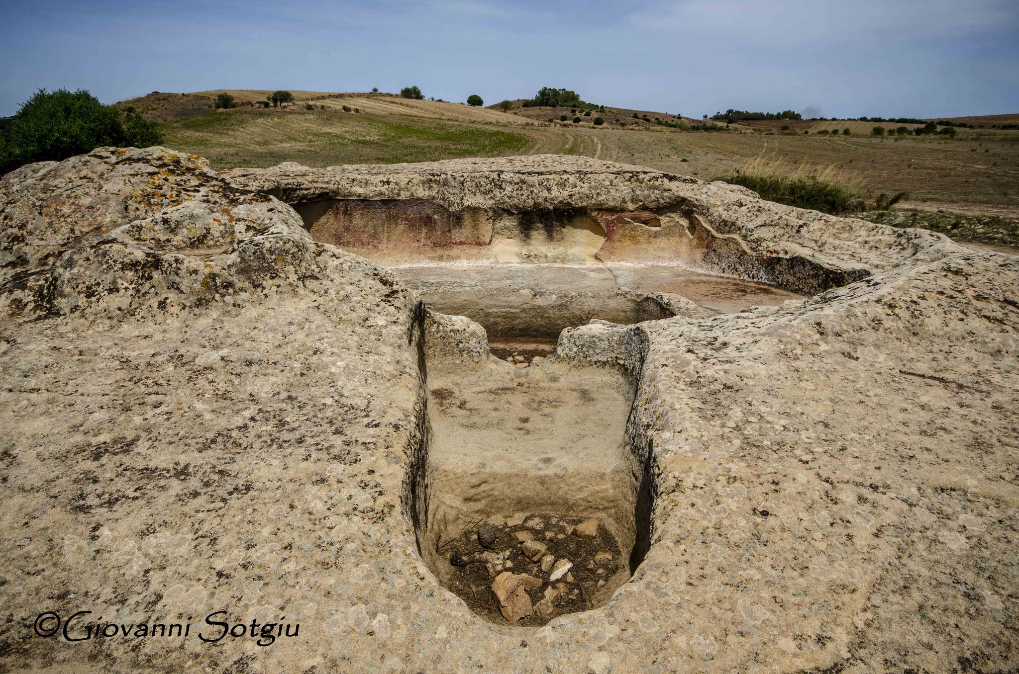 Gli ipogei presenti nel sito sono due: la prima tomba è quella più interessante perché mostra una serie di incisioni sopra il portello d’accesso; la seconda si trova poco più in là, in prossimità del ciglio della strada ed ha l’ambiente interno quasi del tutto allagato. Entrambe le sepolture sono a pozzetto e risalirebbero al 3000 a. C circa.