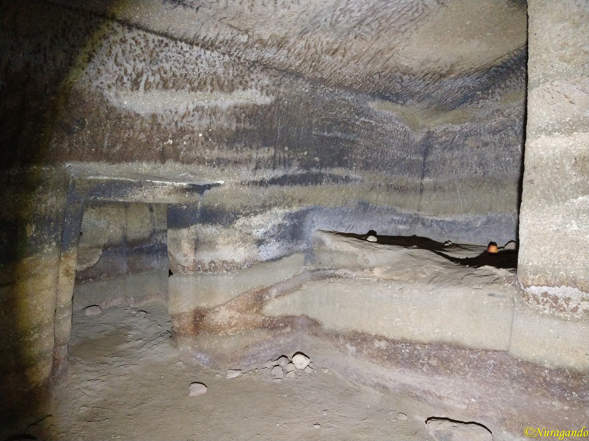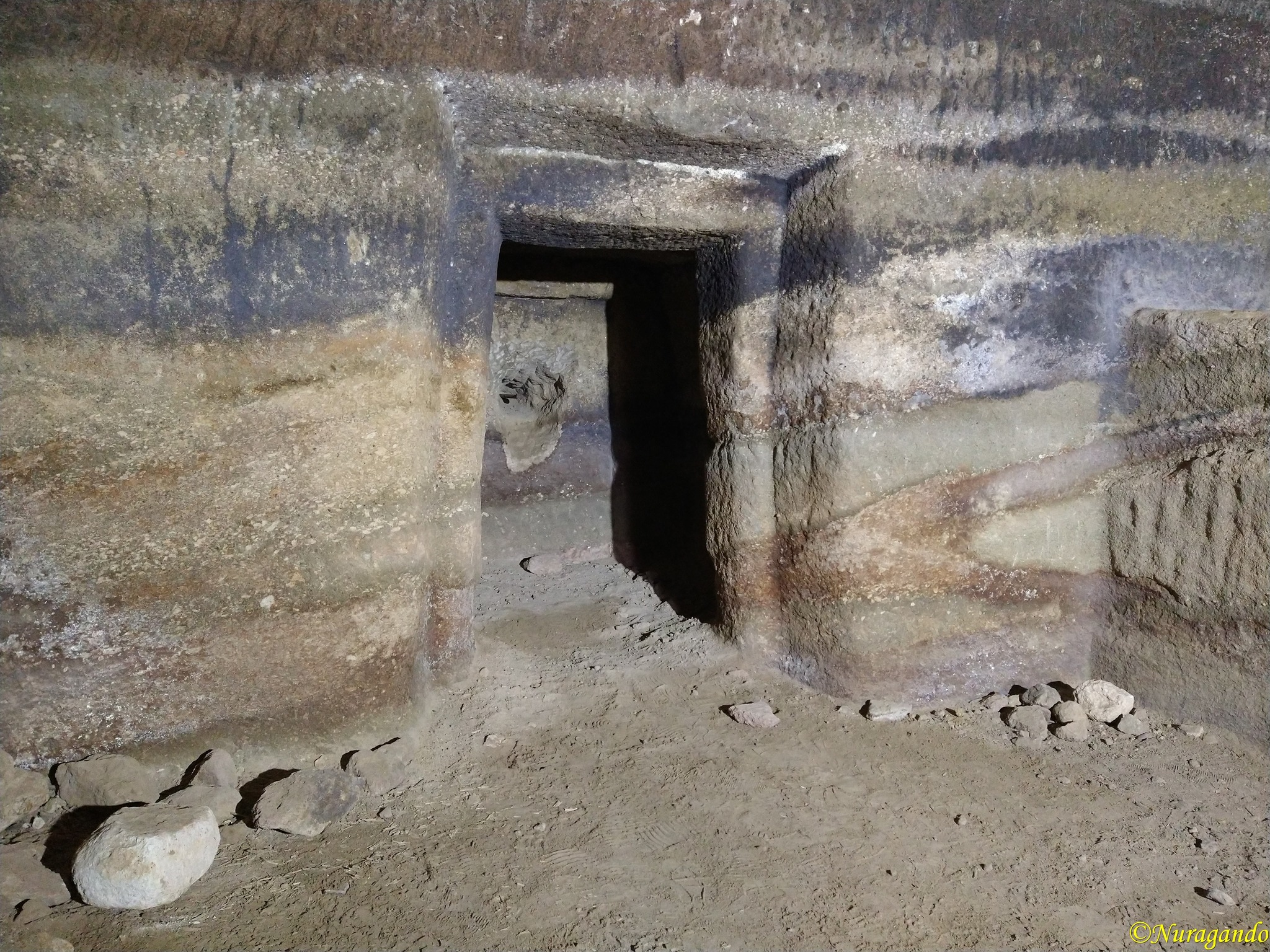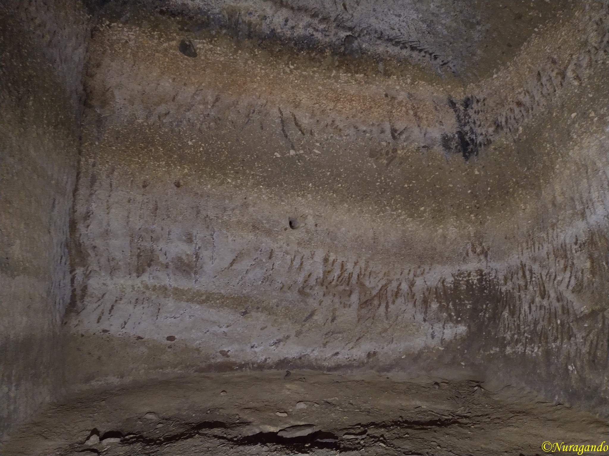 Oggetto di scavo archeologico negli anni 80, ha restituito numerosi reperti come vasi e ceramiche databili al 3400-2800 a.C. . La Domus è composta da un anticella semicircolare di grandi dimensioni a soffitto spiovente con due banconi laterali. Varcata la porta interna si accede ad un secondo ambiente di forma rettangolare, con un magnifico soffitto a doppio spiovente, una vera rarità per il Sud Sardegna. Nei lati della camera si aprono quattro ambienti distinti, il primo a destra possiede un’ulteriore piccola cella. La camera termina con la presenza di una falsa porta, purtroppo gravemente danneggiata dai tombaroli in cerca di un qualche “tesoro”. Ancora oggi in loco, è presente il punteruolo utilizzato per lo scempio.