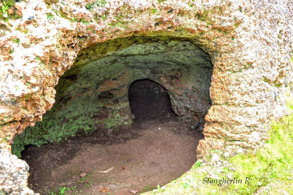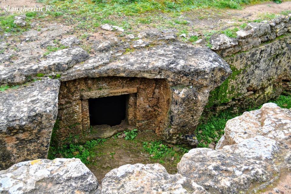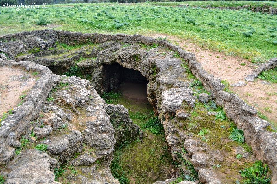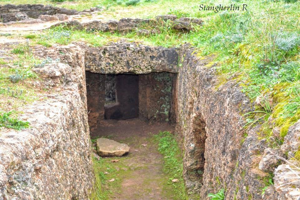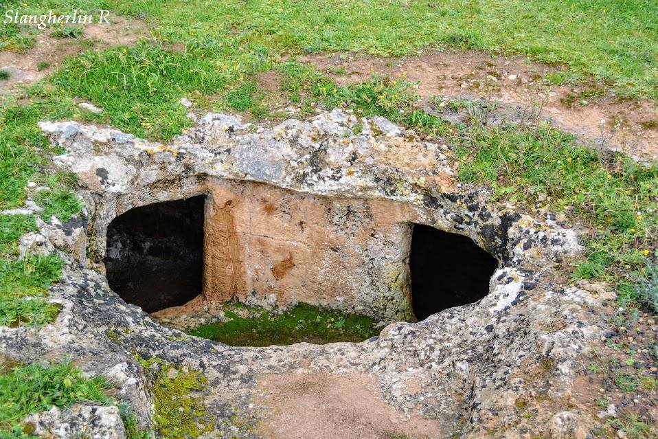 La necropoli è costituita da due gruppi, di 7 e 31 unità, di domus de janas ipogee; una soltanto è monocellulare mentre le altre hanno planimetrie più articolate e una di esse contiene fino a undici vani. Sono del tipo “a proiezione verticale e orizzontale”, ossia accessibili attraverso un pozzetto verticale oppure un dromos discendente, quasi sempre provvisto di gradini che immettono nel vestibolo.