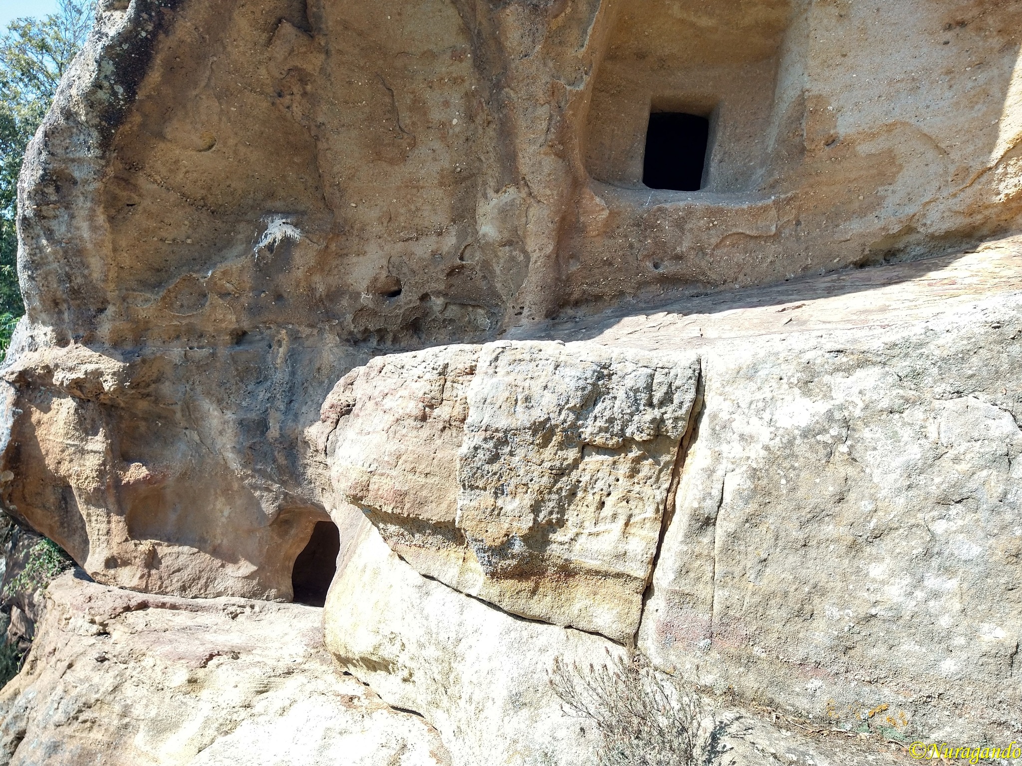 Alcune domus si trovano davanti alla chiesa, altre sono ricavate all’interno di un roccione molto suggestivo e particolare, altre ancora sono situate al di fuori del parco.