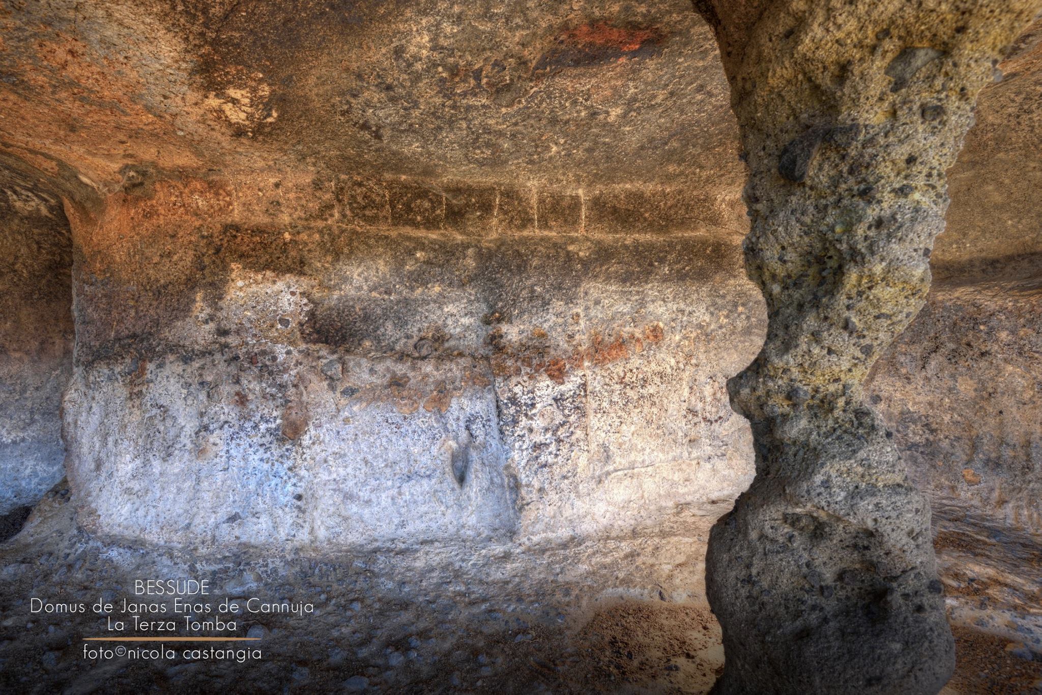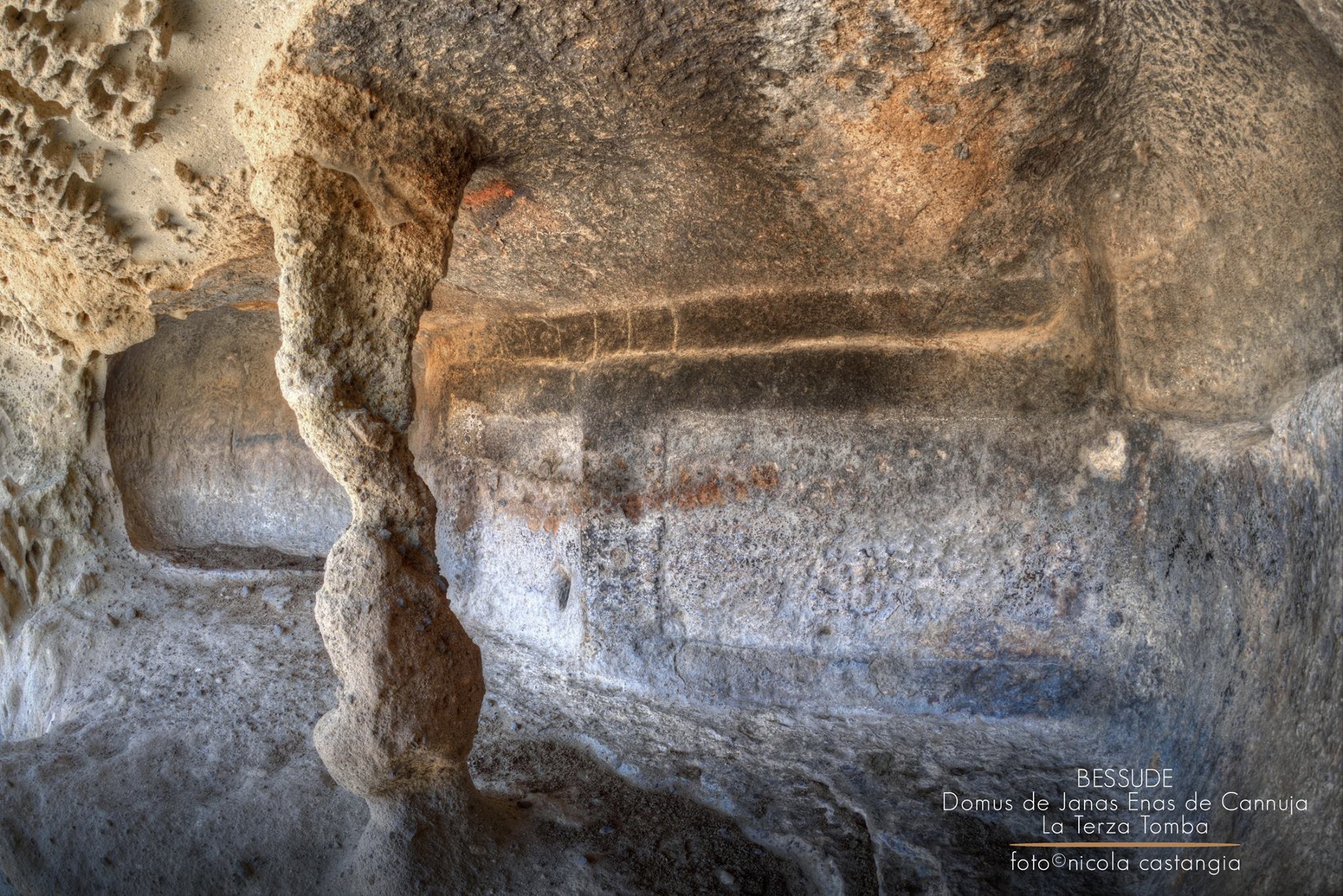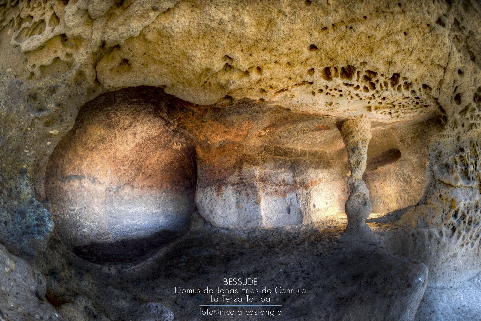 Domu de Janas posta nelle vicinanza della provinciale. Scavata su calcare, presente delle particolari protomi taurine in altorilievo e particolari della copertura che probabilmente richiamano le abitazioni di quei tempi