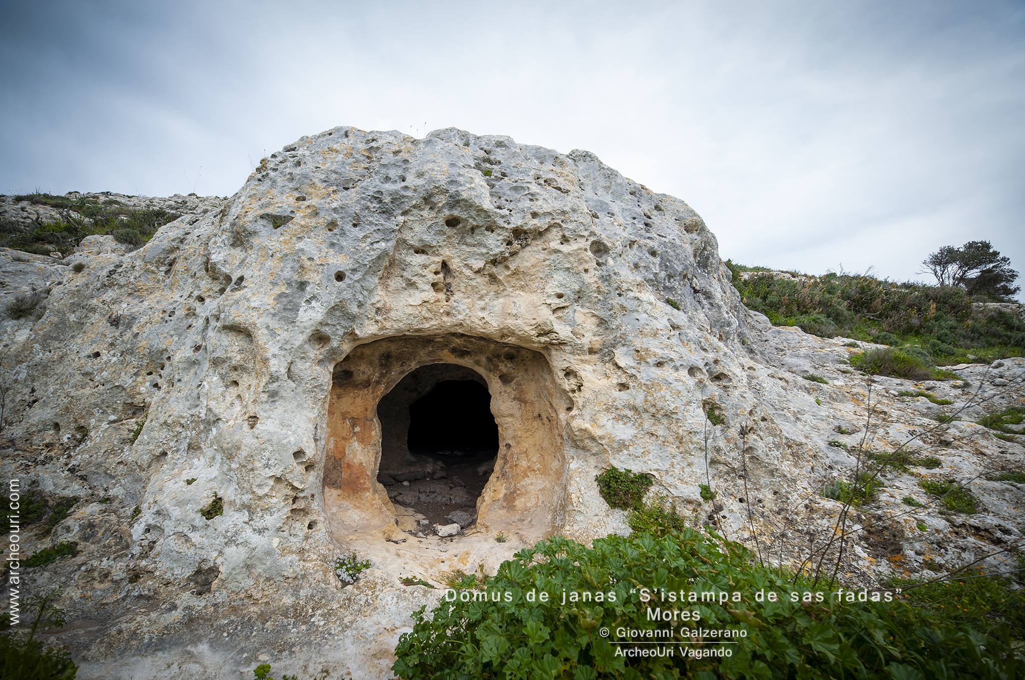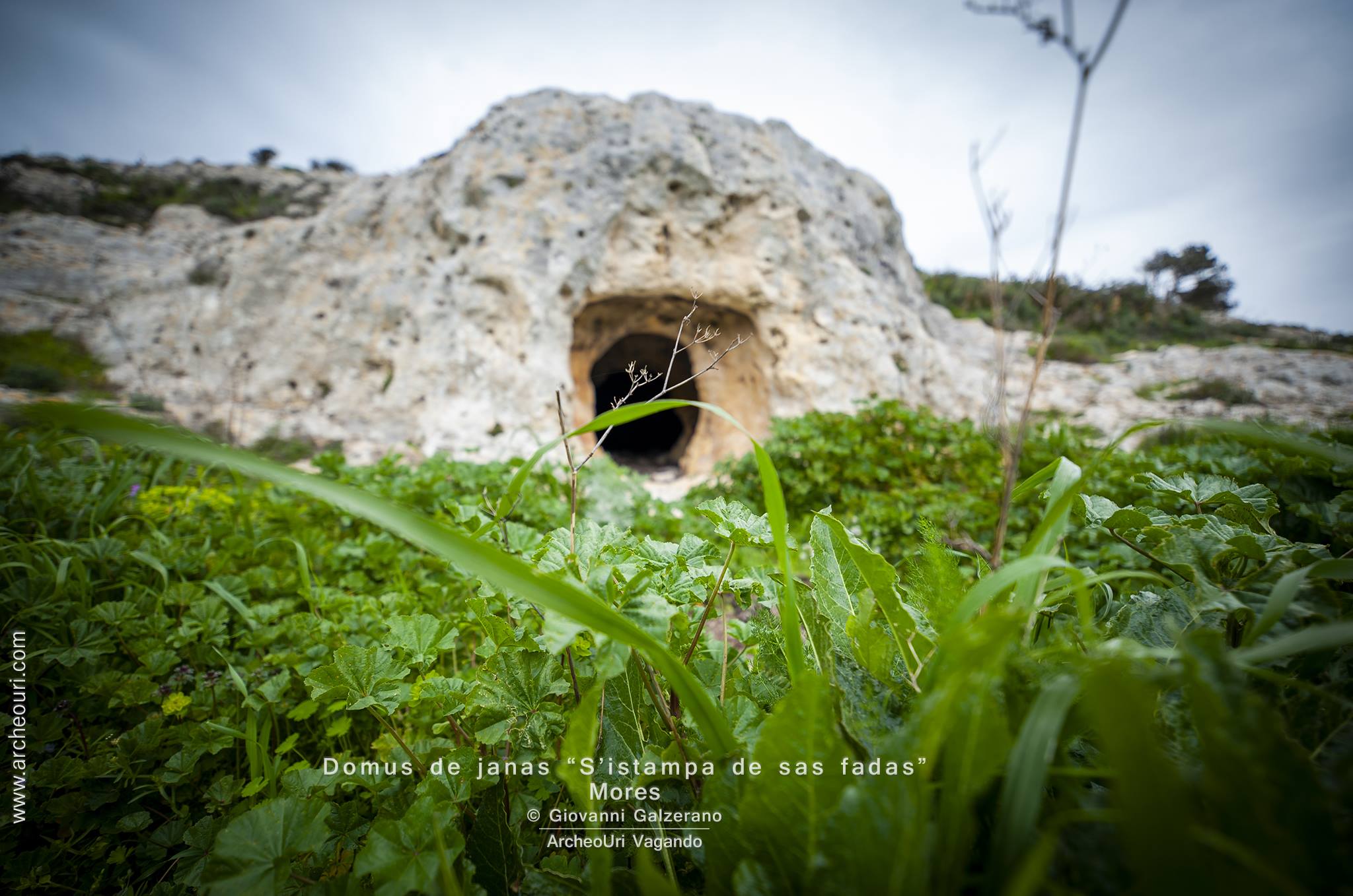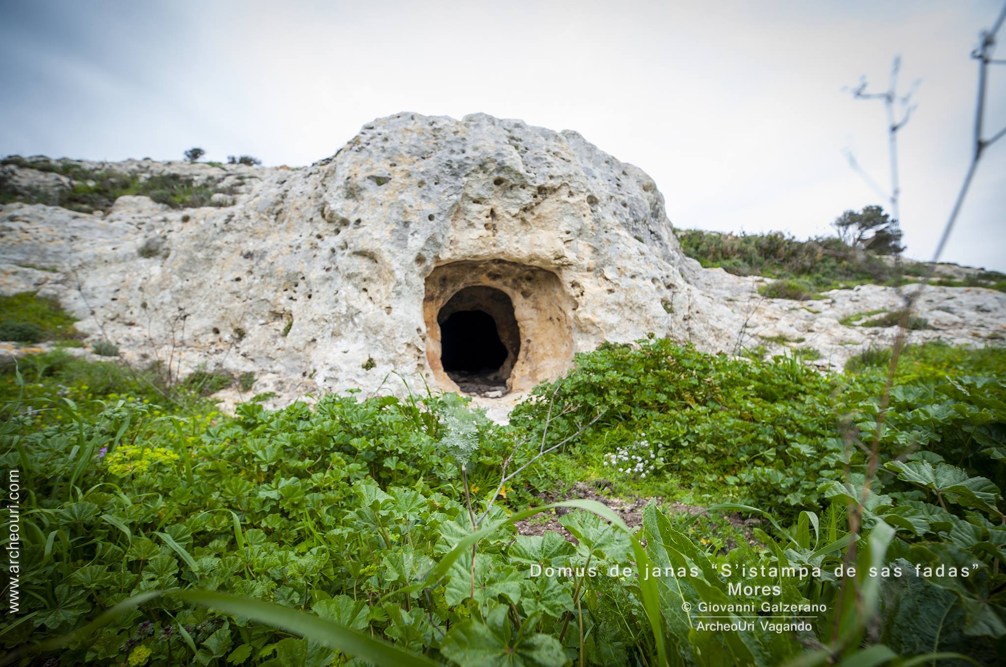 Nella parte alta di Mores, un costone calcareo domina l’abitato dall’alto, s’Istampa de sas fadas è una domus semplice, che colpisce l’occhio poichè è stata realizzata alla base del monte in cui si trova, sfruttando una protuberanza irregolare della roccia. Proprio come uno stampo quell’antica tomba caratterizza il paesaggio e ci fa pensare a quanto fossero basilari l’armonia e l’equilibrio delle forme nel contesto in coloro che scavavano le tombe.