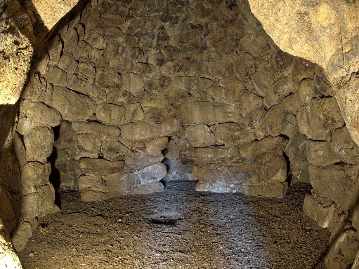 XVI – XIII a.C.), è costruito in trachite. Presenta un corridoio con scala elicoidale a sinistra e garetta di guardia a destra, e una camera a volta, perfettamente conservata, con tre nicchie disposte a croce. Gli stipiti dell’ingresso del nuraghe sono alti rispettivamente m. 1,52 e m. 1,24. La torre ha un’altezza massima di 8 m. ed è composta di diciassette filari di pietre. L’ingresso è situato ad Est, il suo architrave perfettamente lavorato è lungo m. 1,60, alto m. 0,70 e largo m. 0,80.