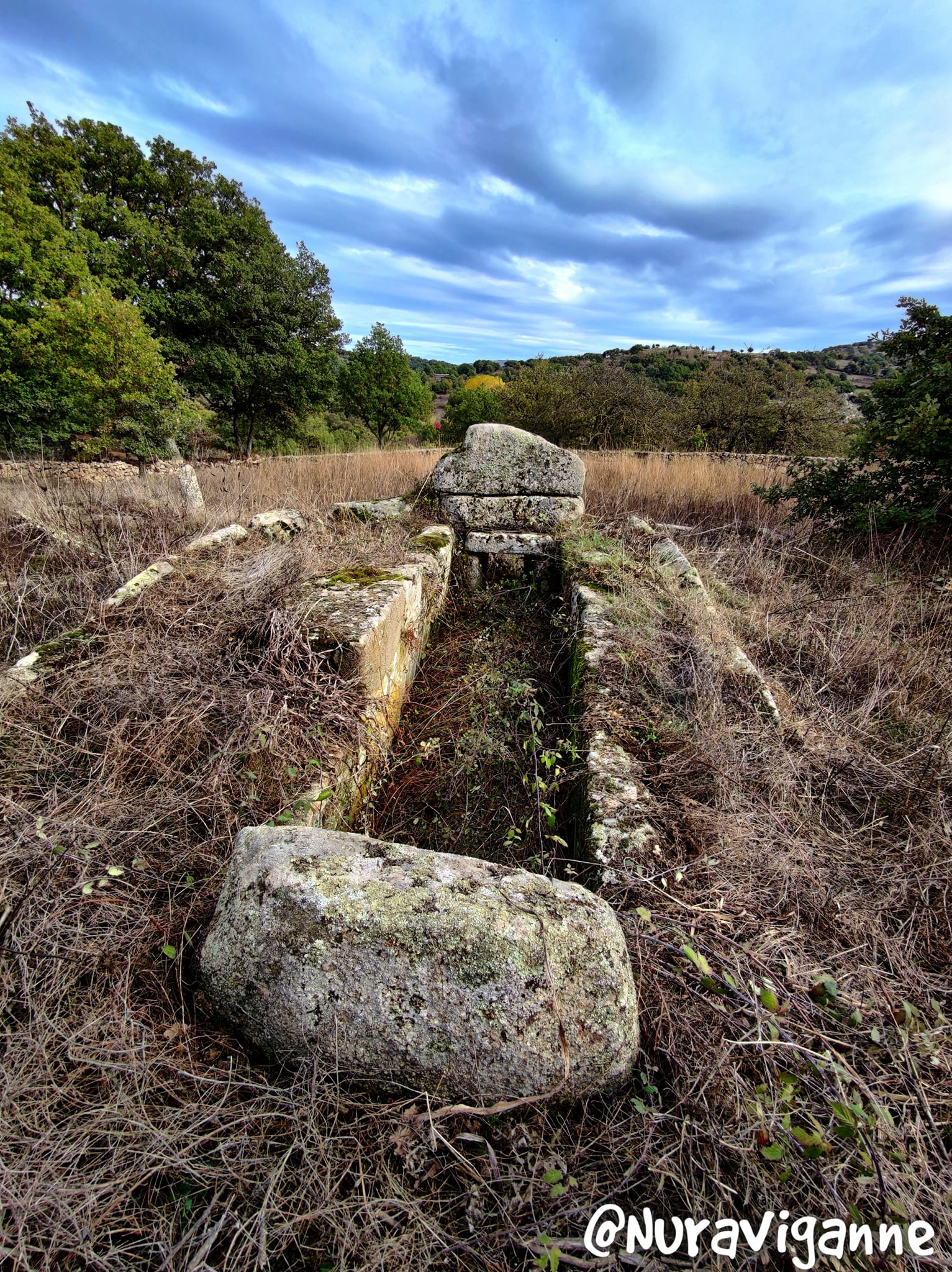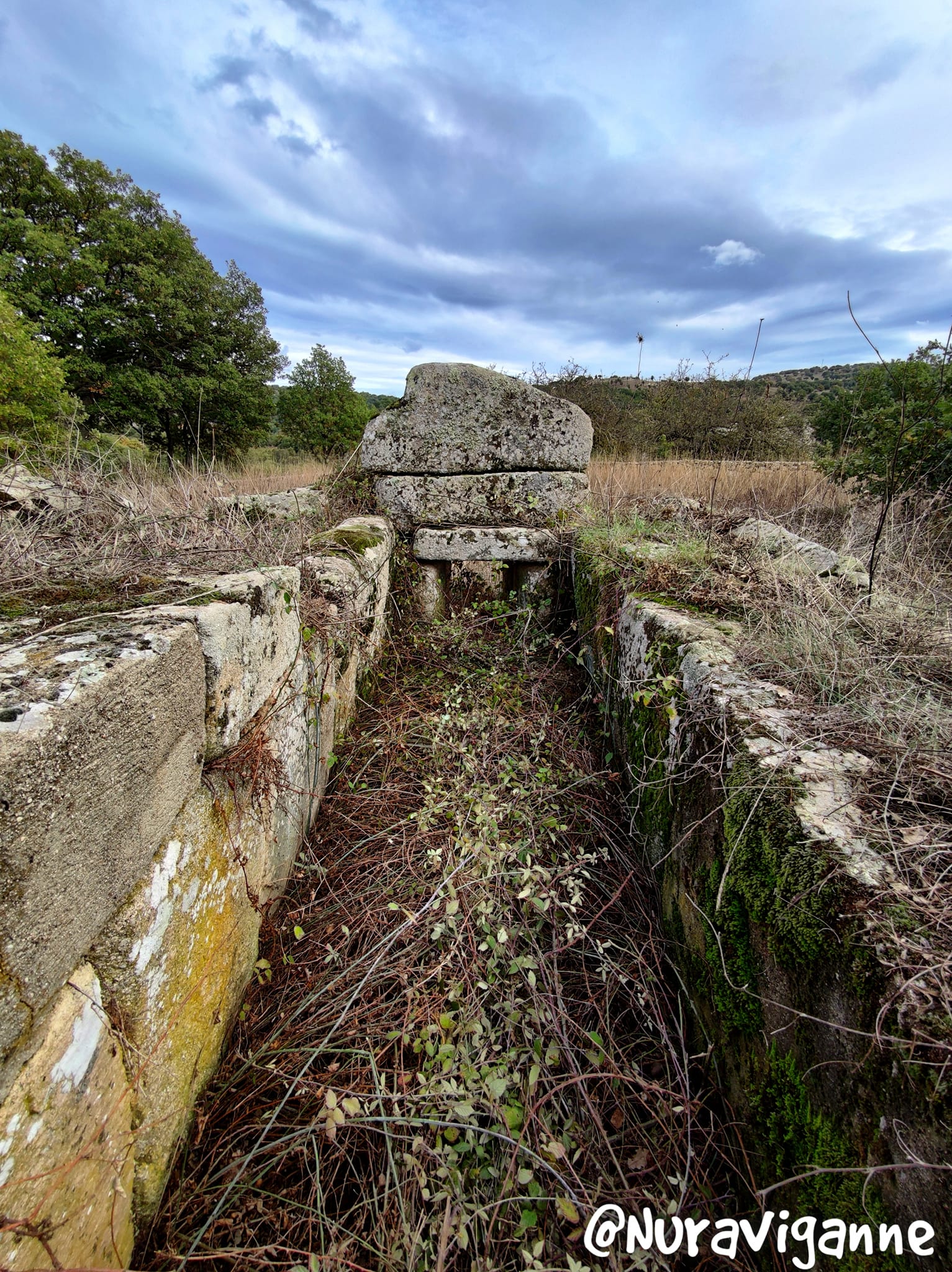 Situata a breve distanza dal rio Durane, la tomba presenta un vano tombale lungo circa 9 metri e un’ampia esedra sulla fronte della lunghezza di 14 metri. È interamente costruita in granito con conci disposti a filari regolari. La parte centrale, presenta il portello d’ingresso sormontato dal cosiddetto “concio a dentelli”. La grande esedra, dotata di banconi-sedili per la sosta dei pellegrini, accoglie, ad est, un piccolo betilo, che dovette essere oggetto di culto.