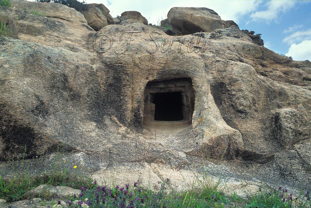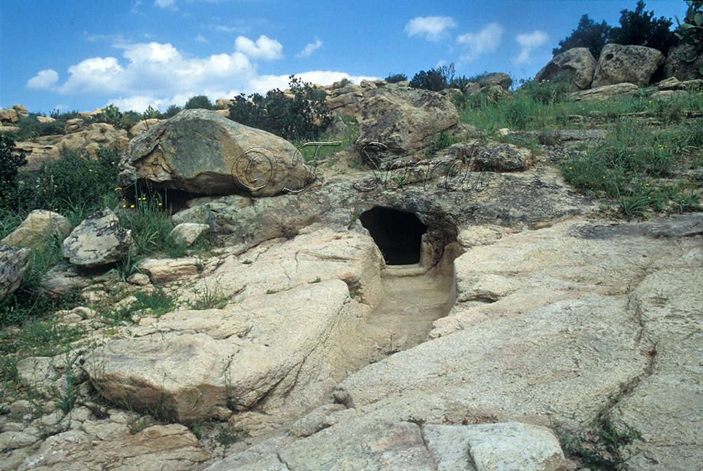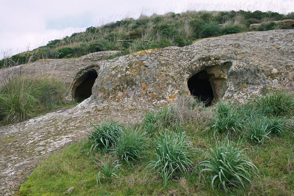 Tre tombe ipogeiche poste nel versante di un piccolo rilievo (quota m. 244). La prima ha una sola cella di forma ellittica a forno. La seconda si compone di atrio anticella e camera sepolcrale di forma quadrangolare che sulla parete dx presenta una nicchia. Sulla sinistra con una cella rialzata più ampia con due nicchiette e una decorazione in rilievo rappresentante due facce umane. La terza tomba, più a valle rispetto alle altre due, è del tipo più regolare con atrio, anticella e cella.