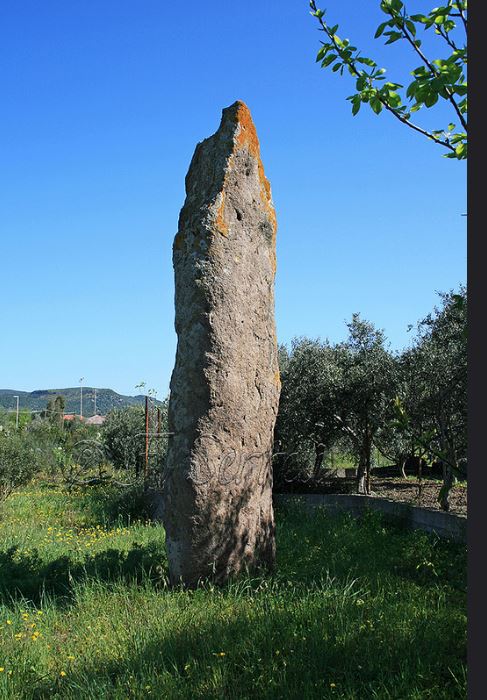 A m 150 dal secondo gruppo di domus, ai piedi del Monte Corru Tundu, è presente un colossale monolite in tufo trachitico dalla sommità troncata (altezza residua m 5,75). Il menhir, uno dei più grandi della Sardegna, è fortemente affusolato, con una faccia spianata e l’altra arrotondata; in questa sembrano individuabili tre coppelle circolari.
