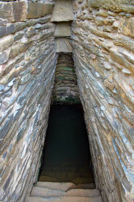 L’atrio è determinato da due paramenti murari composti da blocchi di granito. Dall’ingresso, architravato, si accede alla scalinata attraverso la quale si scende nella camera del pozzo, chiusa sulla sommità da una pseudocupola.