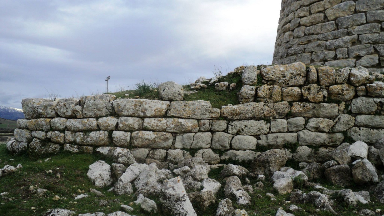 Nuraghe polilobato realizzato in calcare bianco.